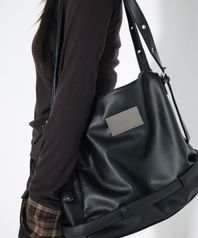 CLASSIC LOGO ROUND SUEDE SHOULDER BAG black