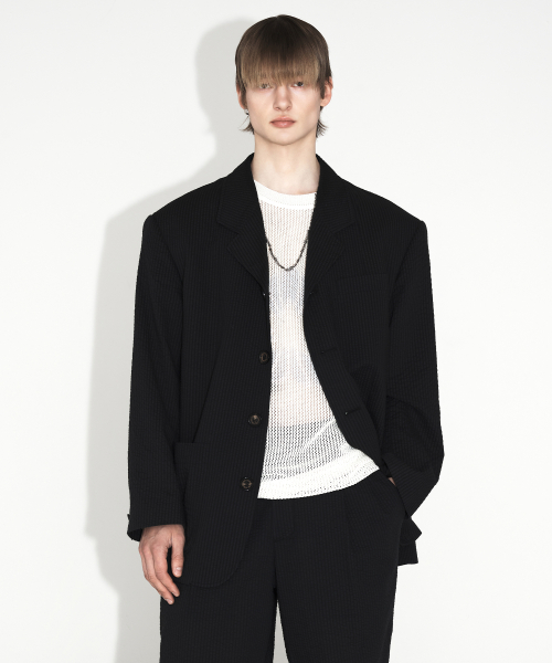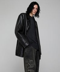[런웨이] 페이드 워시드 포우 레더 블레이저_블랙