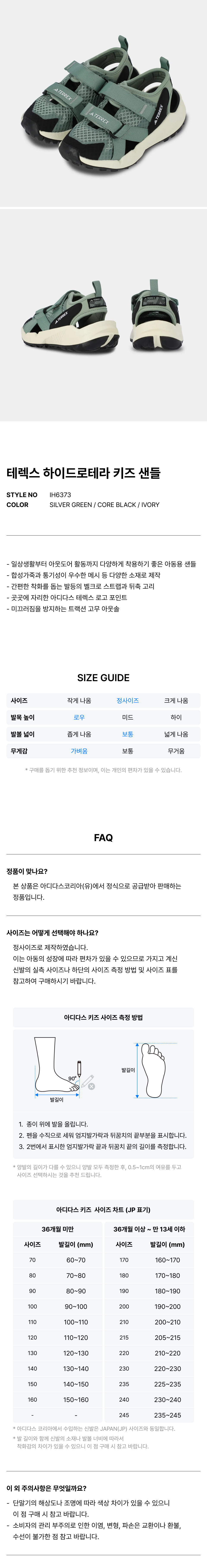 테렉스 하이드로테라 키즈 샌들 - 실버그린 / IH6373