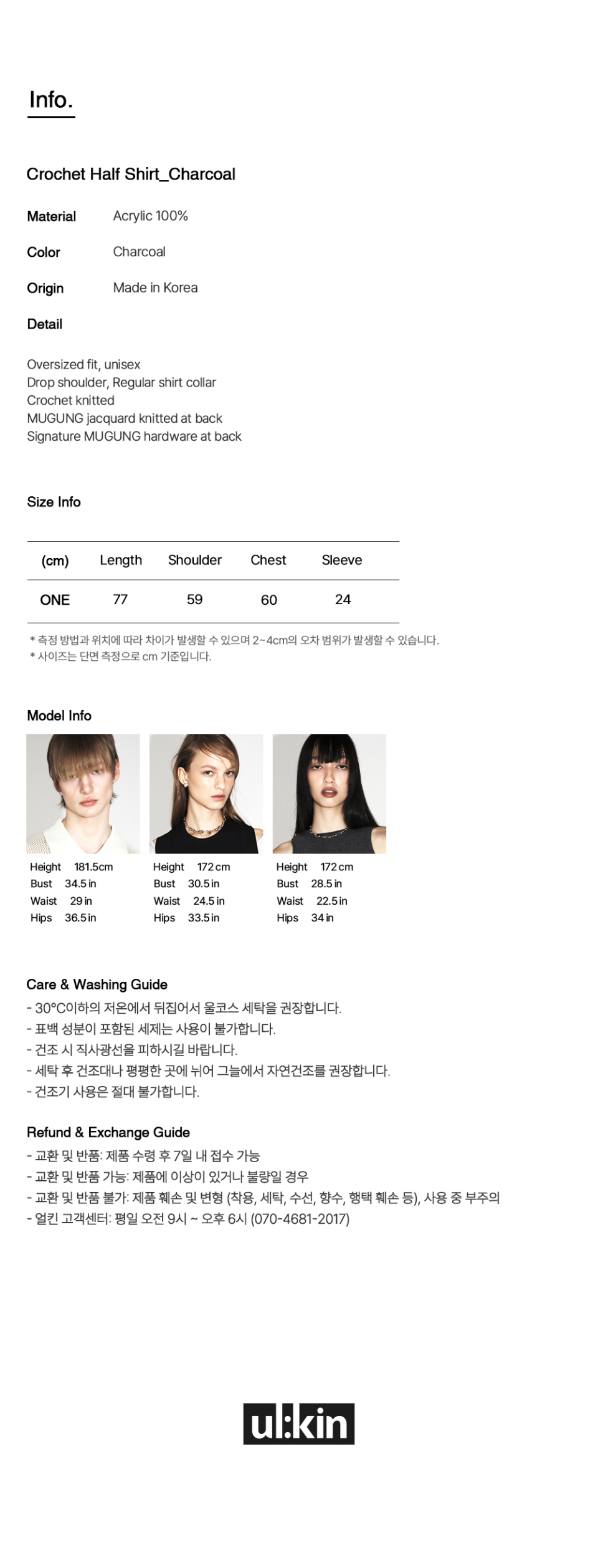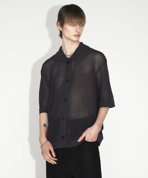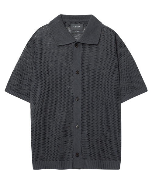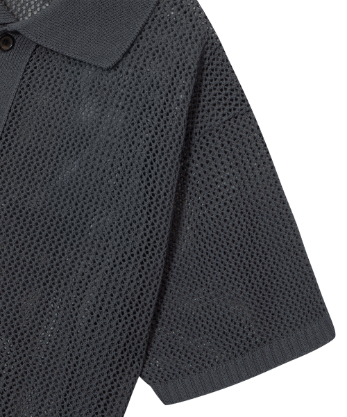 [런웨이] 무궁 크로셰 하프 셔츠_차콜