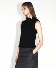스탠드 카라 트위드 슬리브리스 탑_블랙