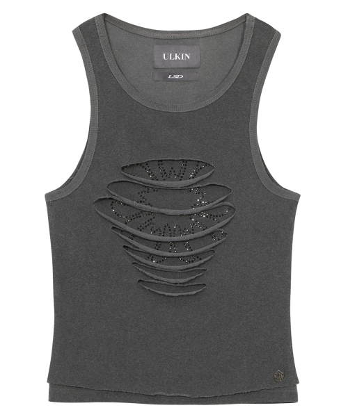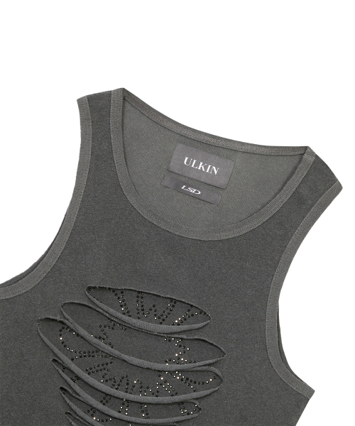 [런웨이] 컷아웃 무궁 큐빅 탱크 탑_차콜