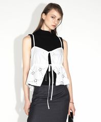 스탠드 카라 트위드 슬리브리스 탑_블랙