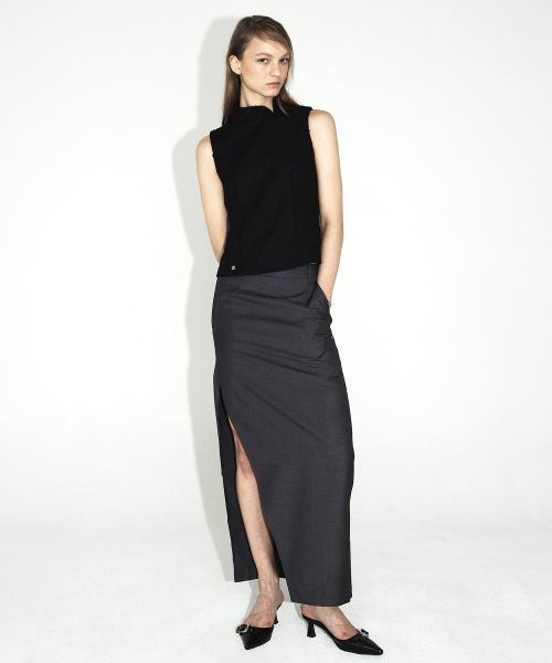 언발란스 스트라이프 맥시 스커트_차콜