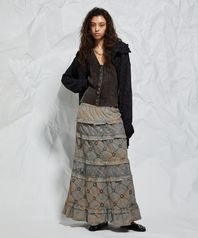 [런웨이] 전통염색 감, 먹 무궁 펀칭 레이스 프릴 롱 스커트_브라운