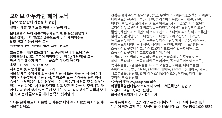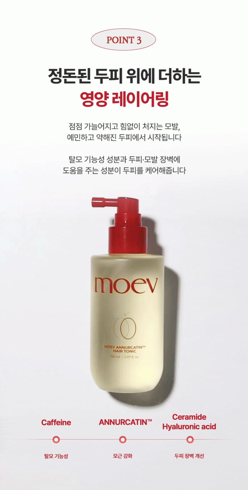 모에브(MOEV)는 자연에서 찾은 독자적 성분 배합인 '아누카틴' 성분의 탈모케어 브랜드입니다.