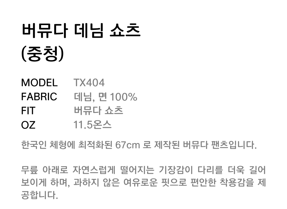TX406 버뮤다 데님 쇼츠 (흑청)