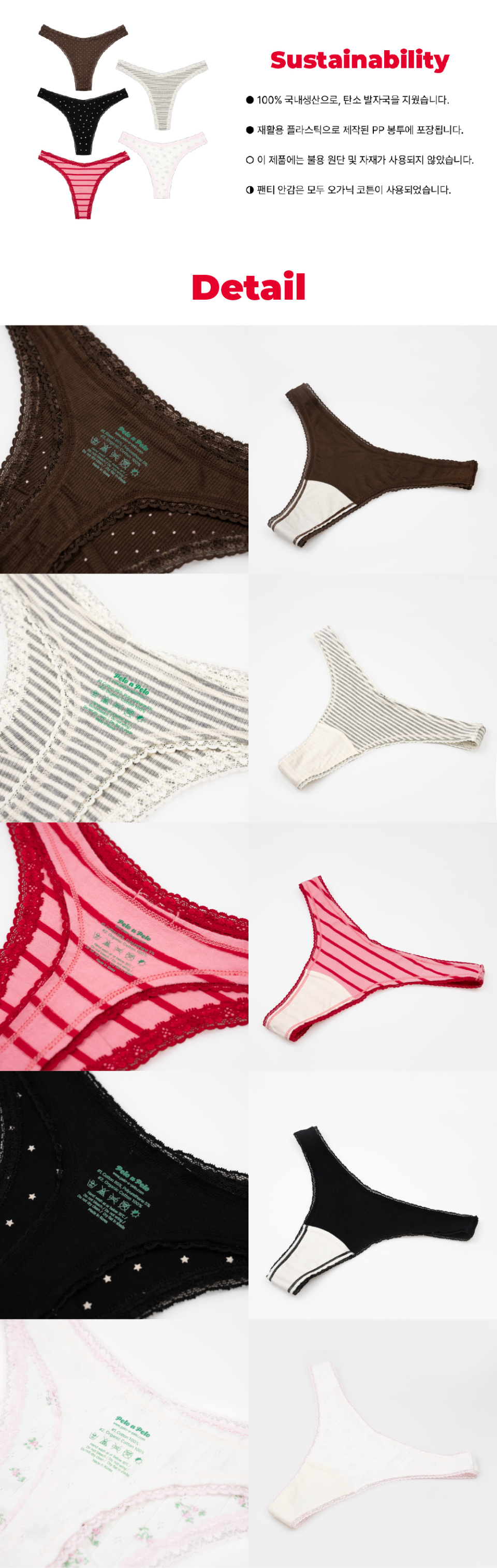 펠로 아 펠로(PELO A PELO)는 즐거운 하루의 시작을 위한 언더웨어 브랜드입니다. 불용 원단과 친환경 소재를 활용하여 지구와 여성을 위한 디자인을 전개합니다.