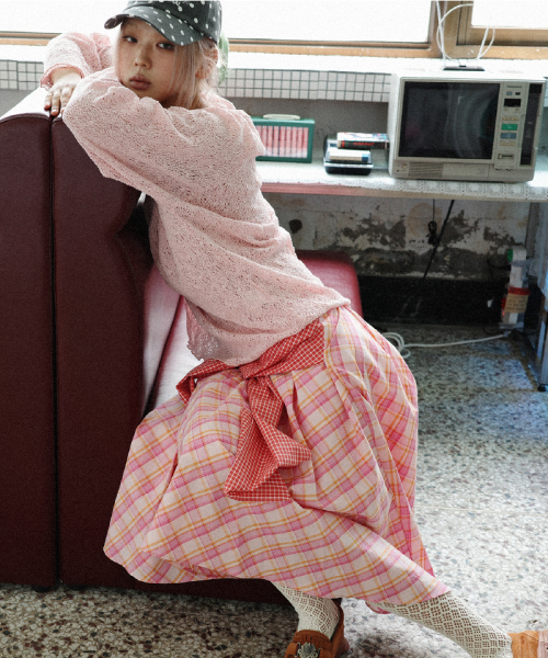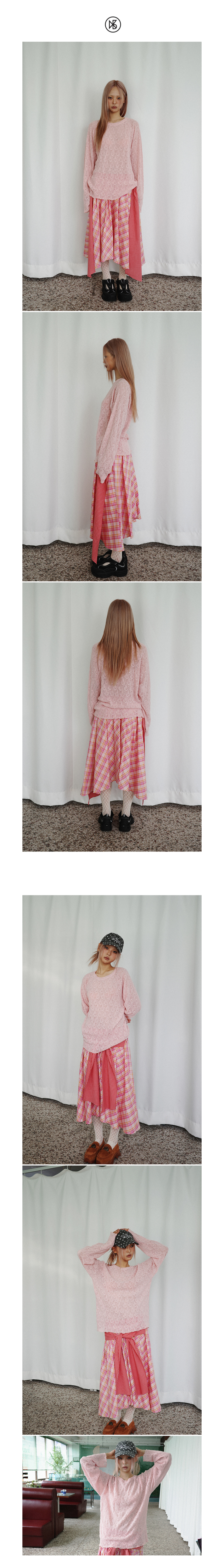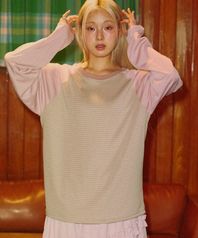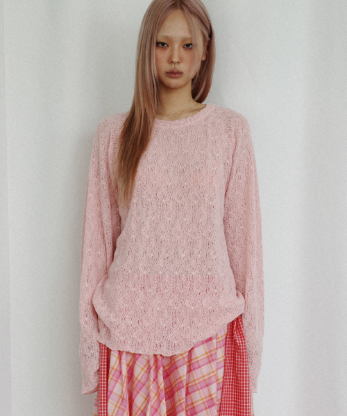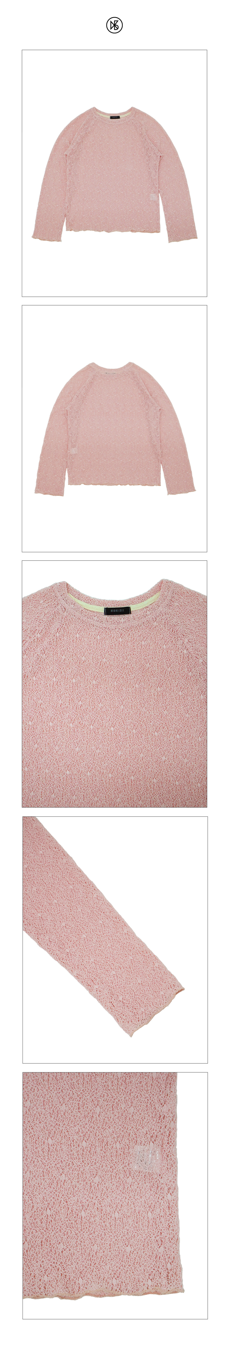 네트 래글런 슬리브 니트 티셔츠_핑크