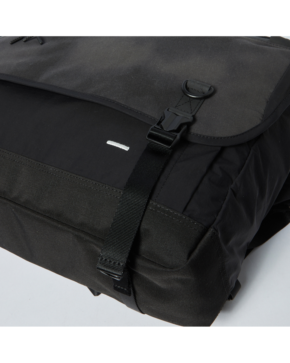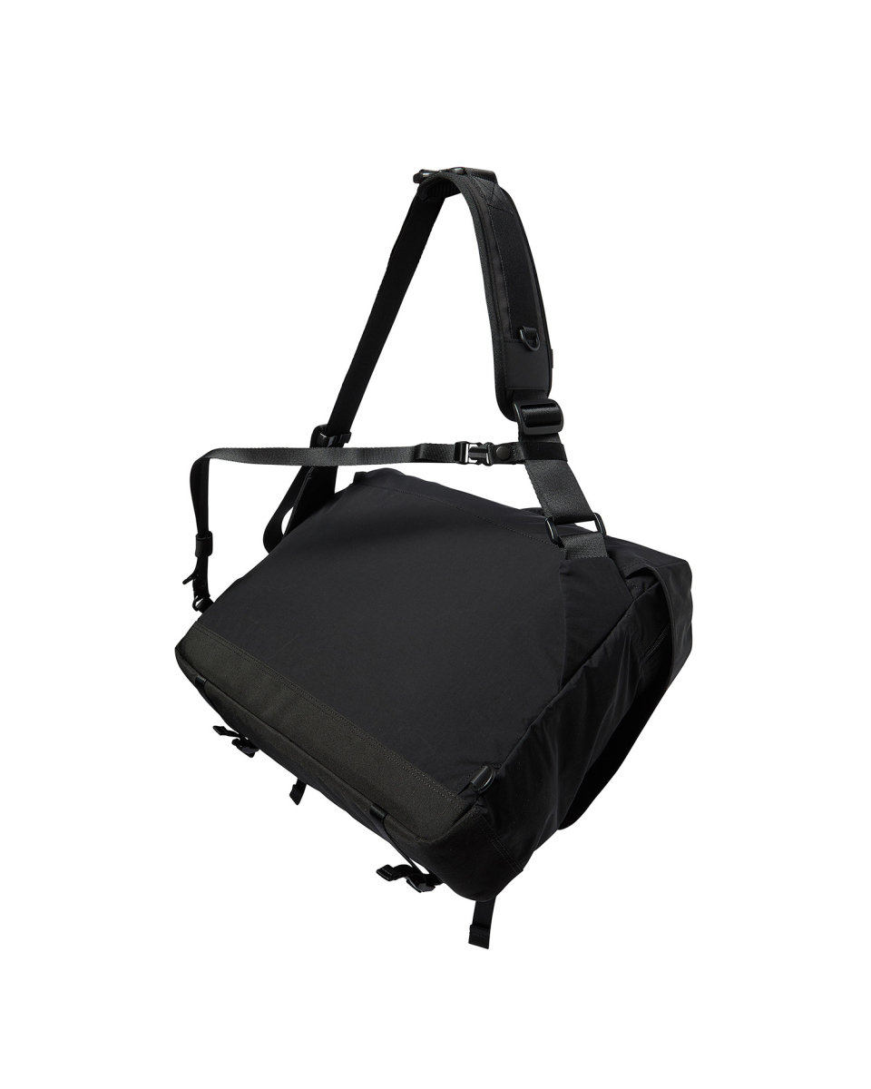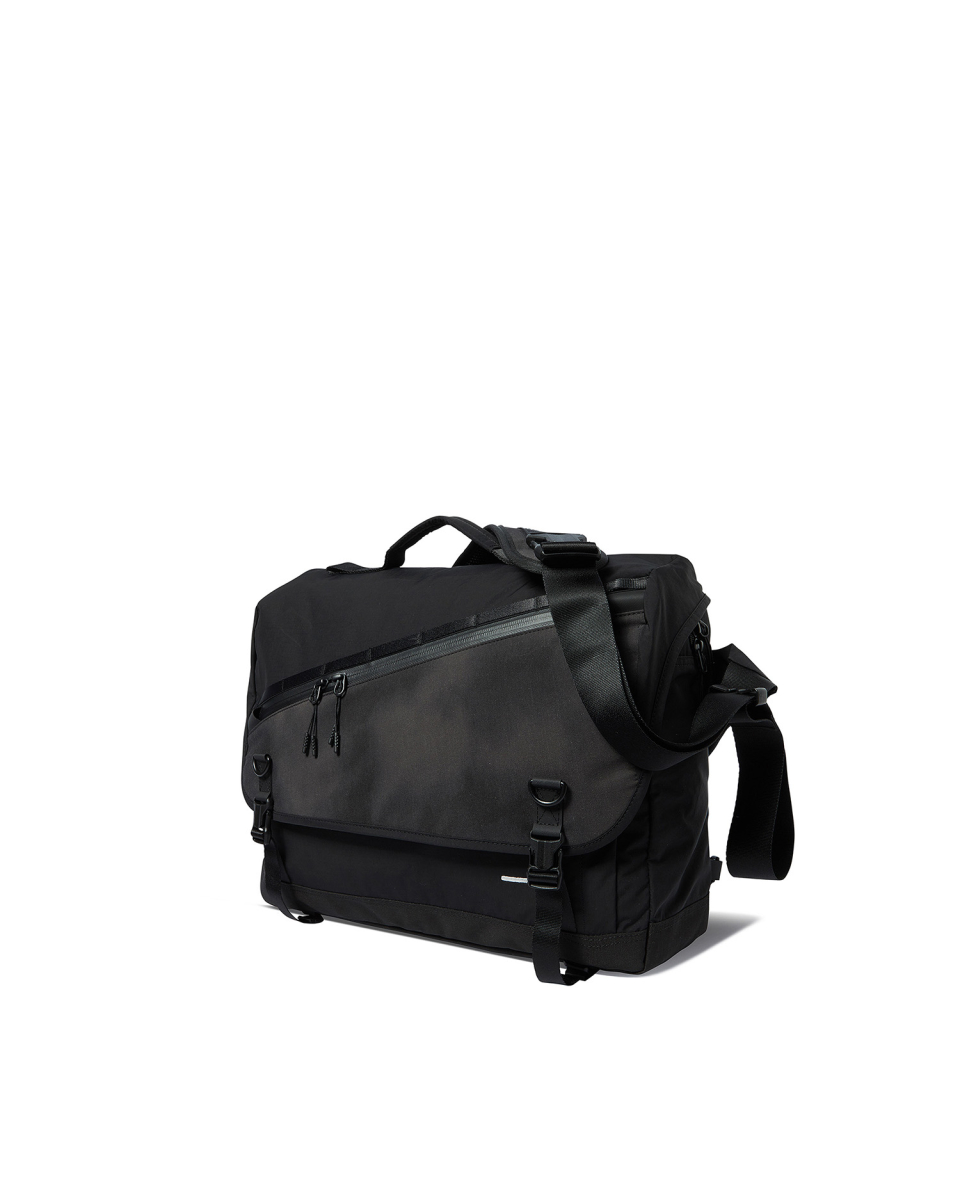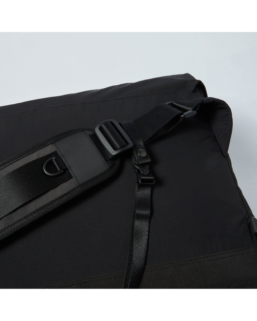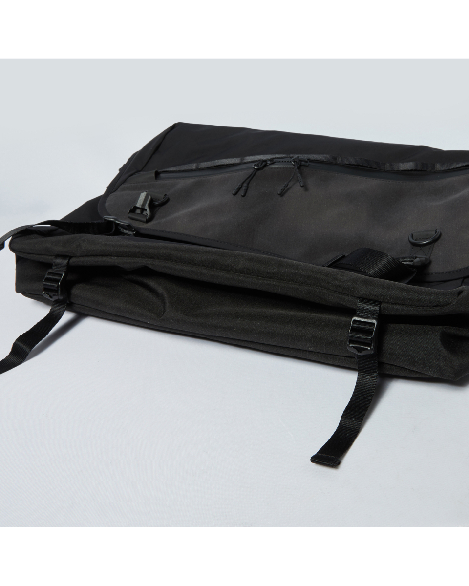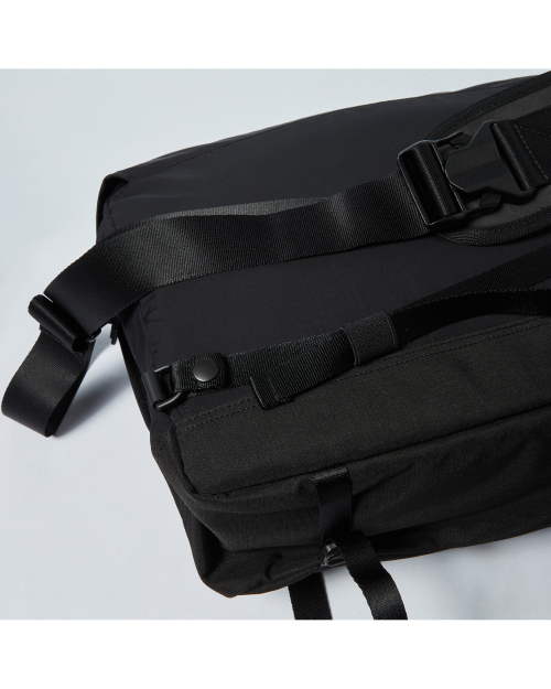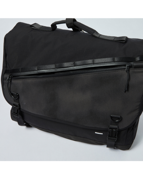 : 탑 핸들과 인체 공학적으로 설계된 스트랩 및 보조 스트랩을 활용해 다용도로 사용하실 수 있는 메신저백입니다. 출,퇴근과 일상 생활 뿐 아니라 자전거나 바이크를 탄 환경에서도 적합합니다. 잘 설계된 구조와 디테일로 등에 알맞게 고정되어 안정적인 피팅감을 제공하며 적절한 보강재를 삽입하여 착용자의 편의성을 세심하게 고려하였습니다. 이번 협업의 시그니처 패브릭인 타이다이를 전면부 덮개에 사용하여 특징을 강조하였고, 입체 패턴이 적용된 덮개에는 키링 등을 걸어둘 수 있는 웨빙 시스템과 이너 포켓이 배치되었습니다. 내부에는 여유로운 공간을 확보하여 17인치 랩탑 및 다양한 서류 등을 수납하실 수 있고 바닥면에는 처짐을 방지하기 위한 보강재를 넣어 전체적인 핏을 안정감있게 유지합니다. 탈부착이 가능한 보조 스트랩은 메인 스트랩과 함께 T자 형태로 몸을 잡아주기 때문에 가방이 흔들릴 수 있는 환경에서도 내부 소지품을 부담 없이 캐리하실 수 있습니다. 보조 스트랩을 사용하지 않는 경우에는 후면부 가장자리의 히든 디테일을 통해 D링을 감출 수 있고 깔끔하고 미니멀한 외관을 만들 수 있습니다. 기본적으로 가방과 함께 2개의 포인트 키링을 제공합니다.