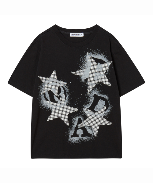 PRDA SPRAY BIG PATCH CHECK STAR CREWNECK TEE BLACK