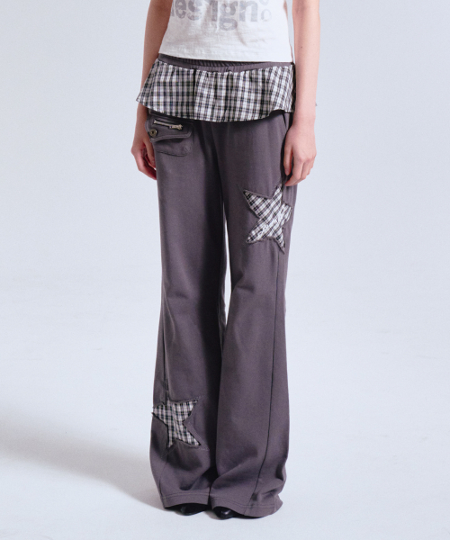 CHECKED FRILL SKIRT CUT-OFF BOOTS CUT PANTS CHARCOAL