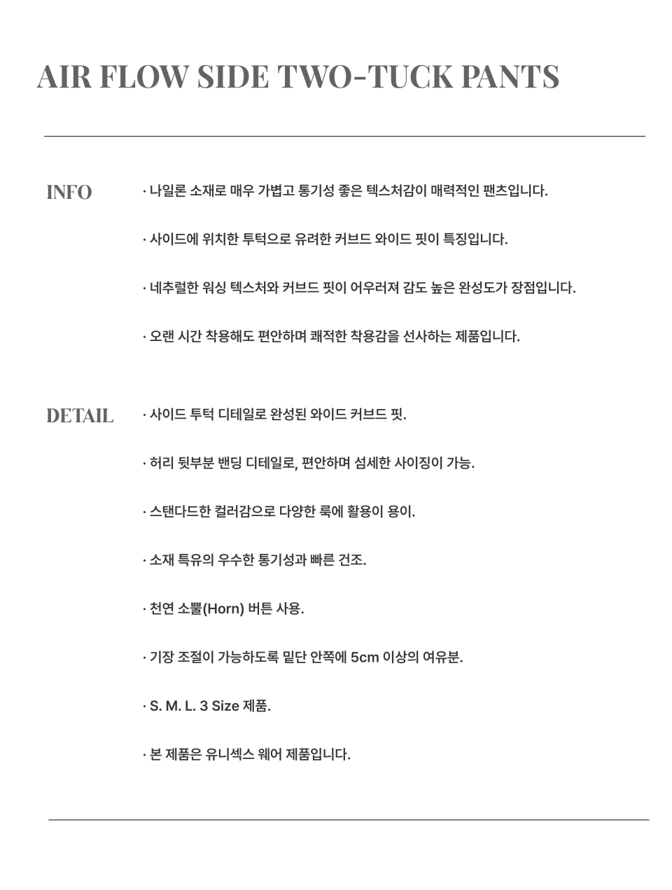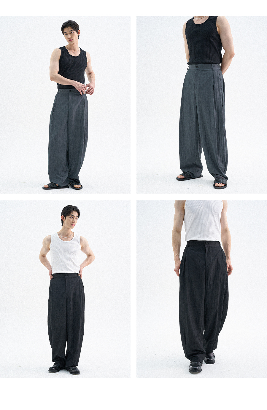 SS 에어 플로우 사이드 투턱 팬츠_차콜