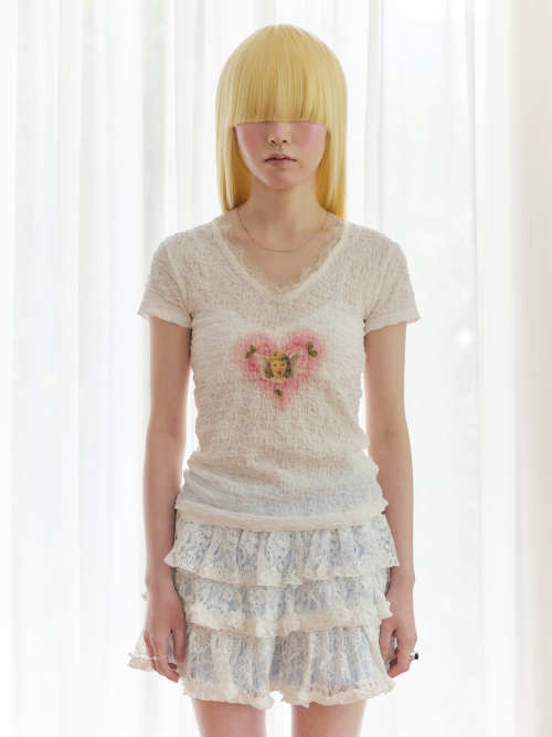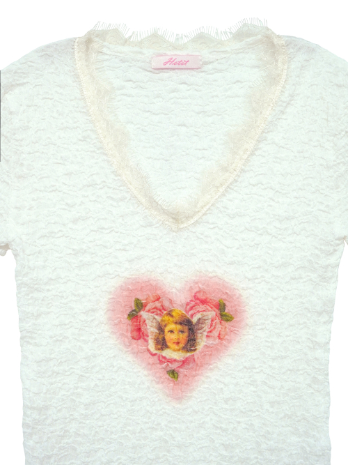 로즈 하트 엔젤 티셔츠 (퓨어화이트)