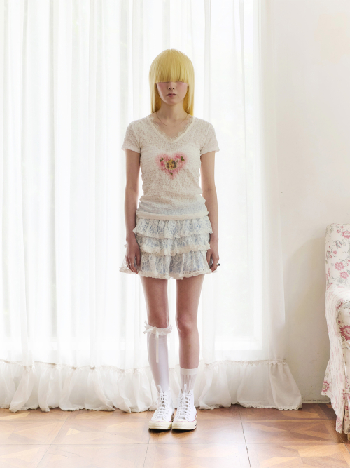 레이스 프린트 티셔츠 (라일락)