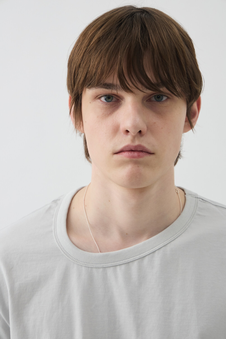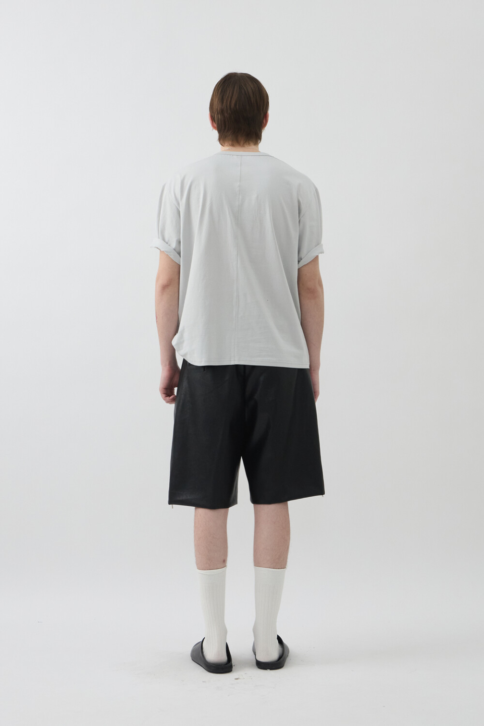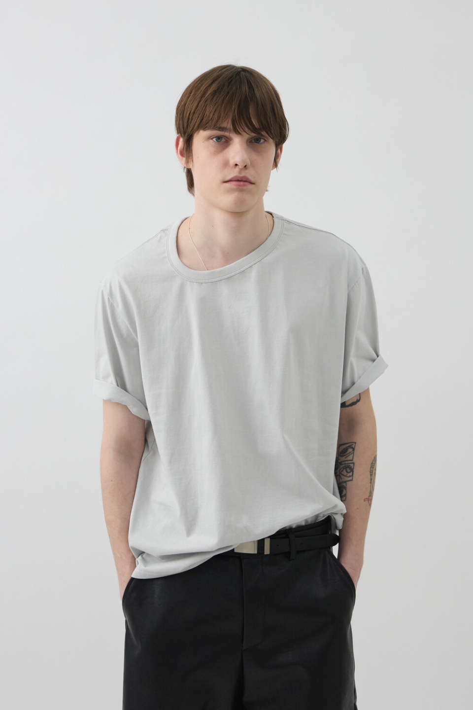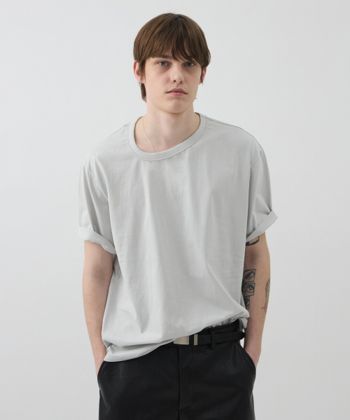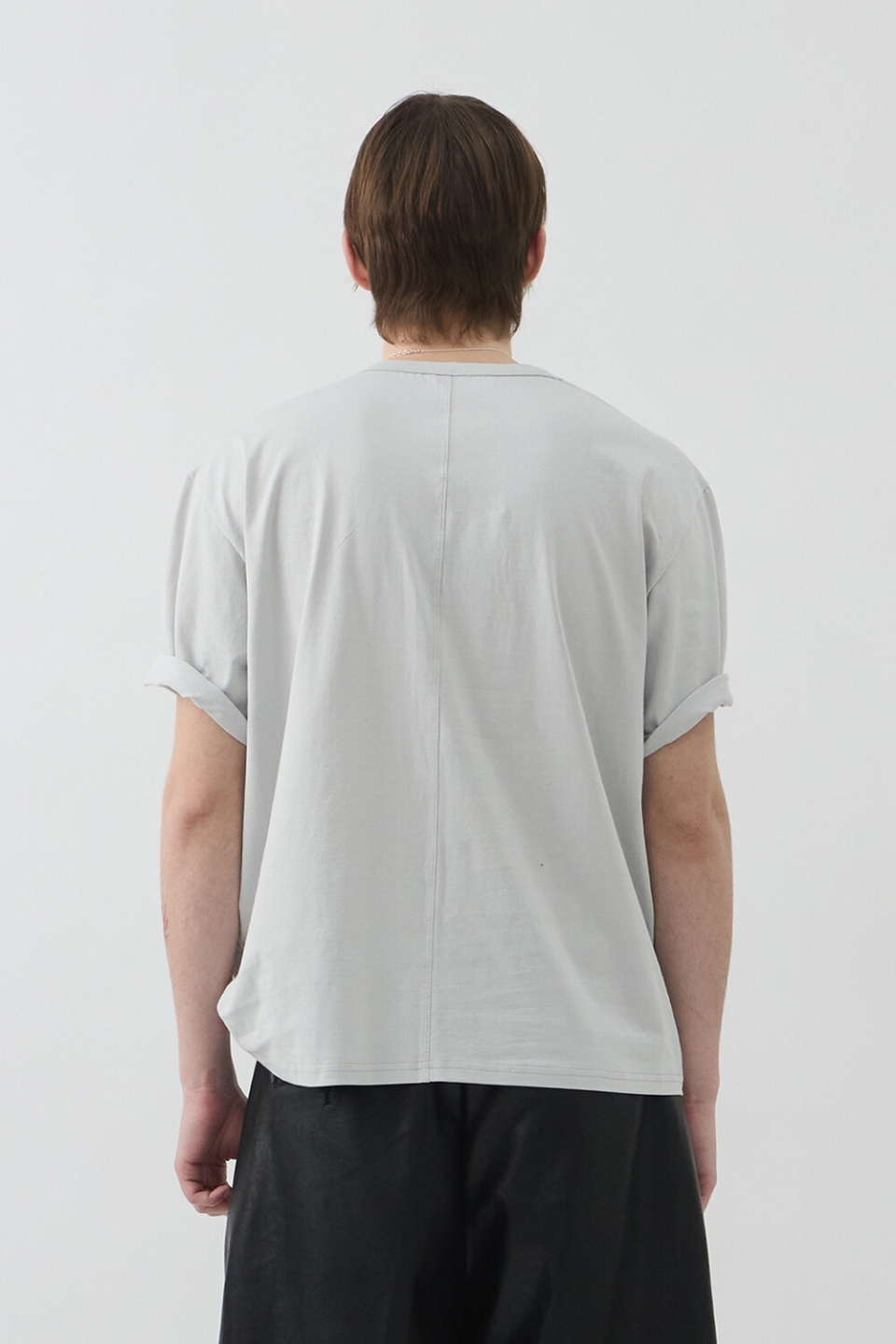 -은은한 언발란스 네크 디자인의 숏슬리브 티셔츠