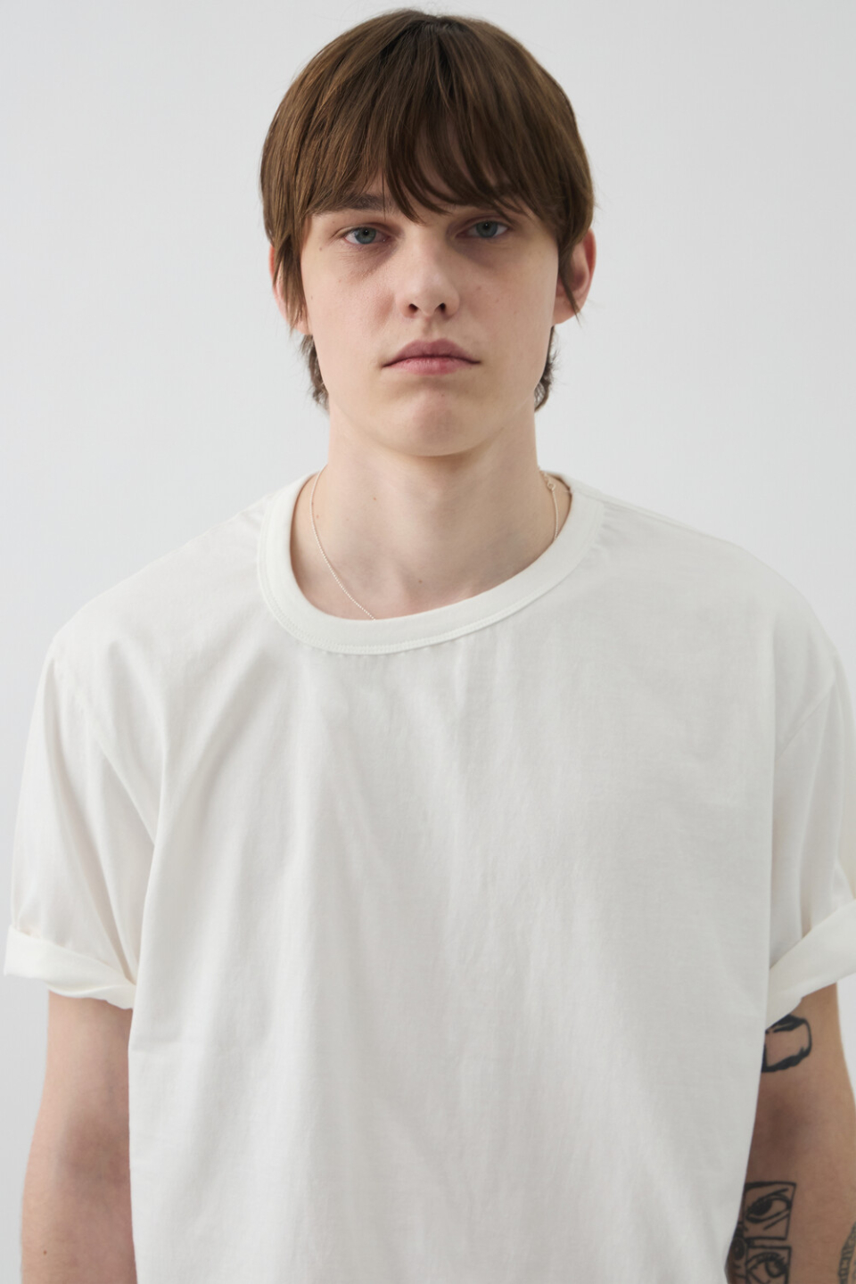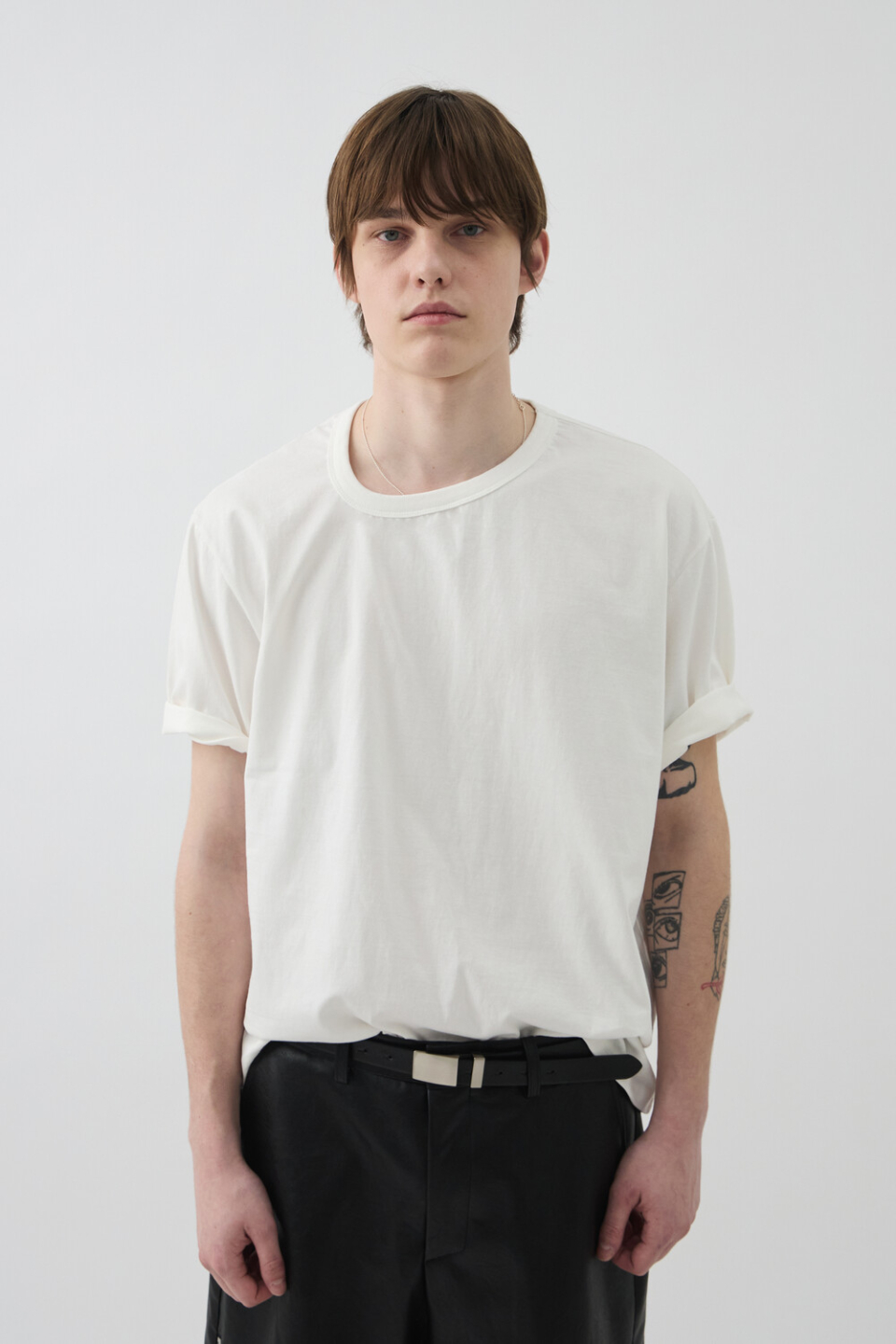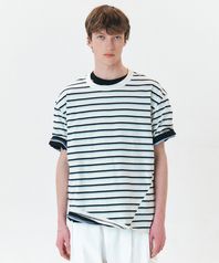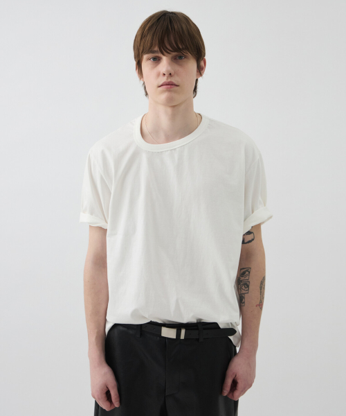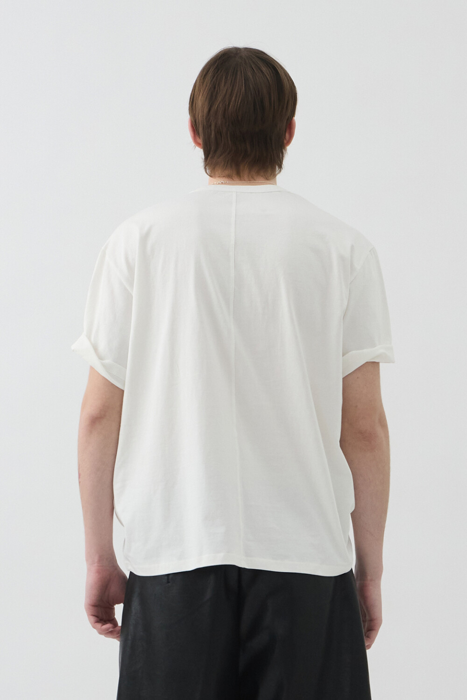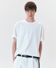 -은은한 언발란스 네크 디자인의 숏슬리브 티셔츠