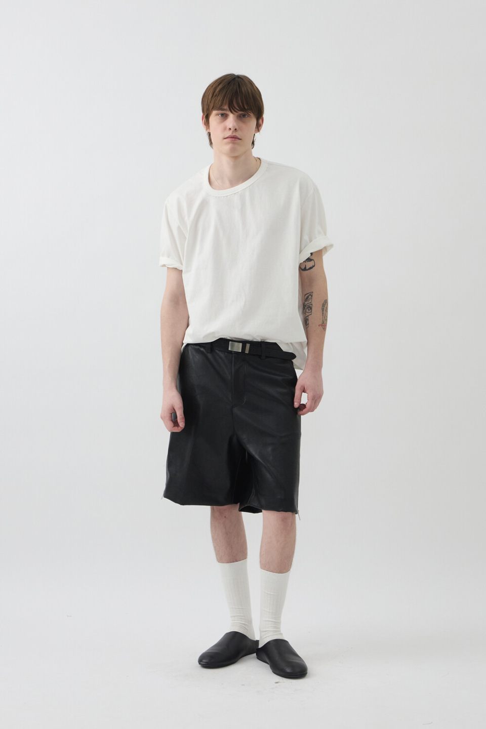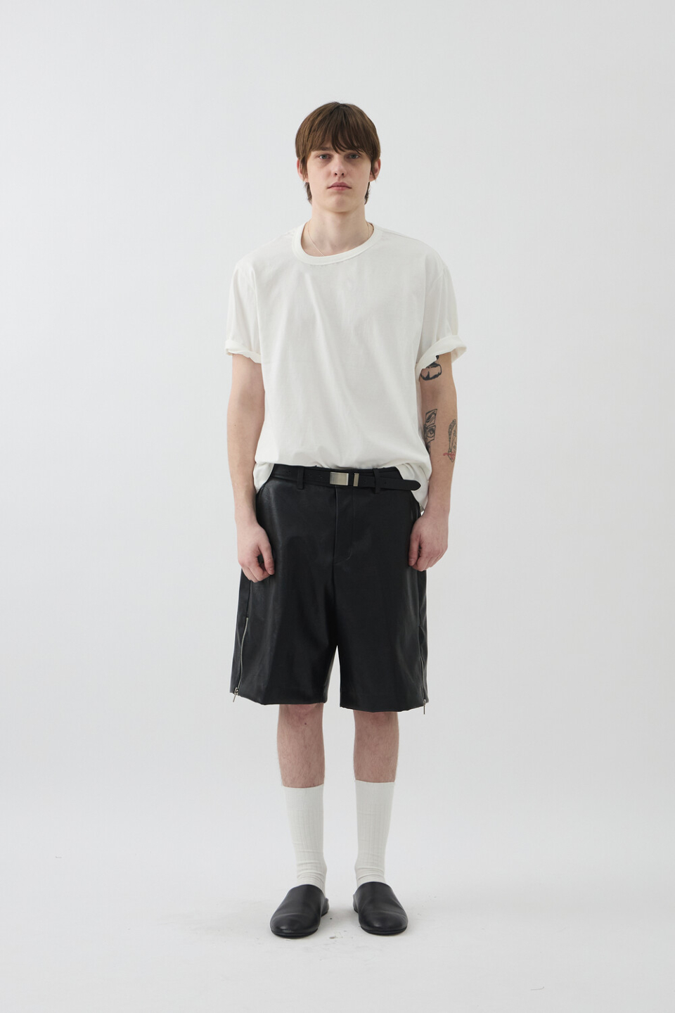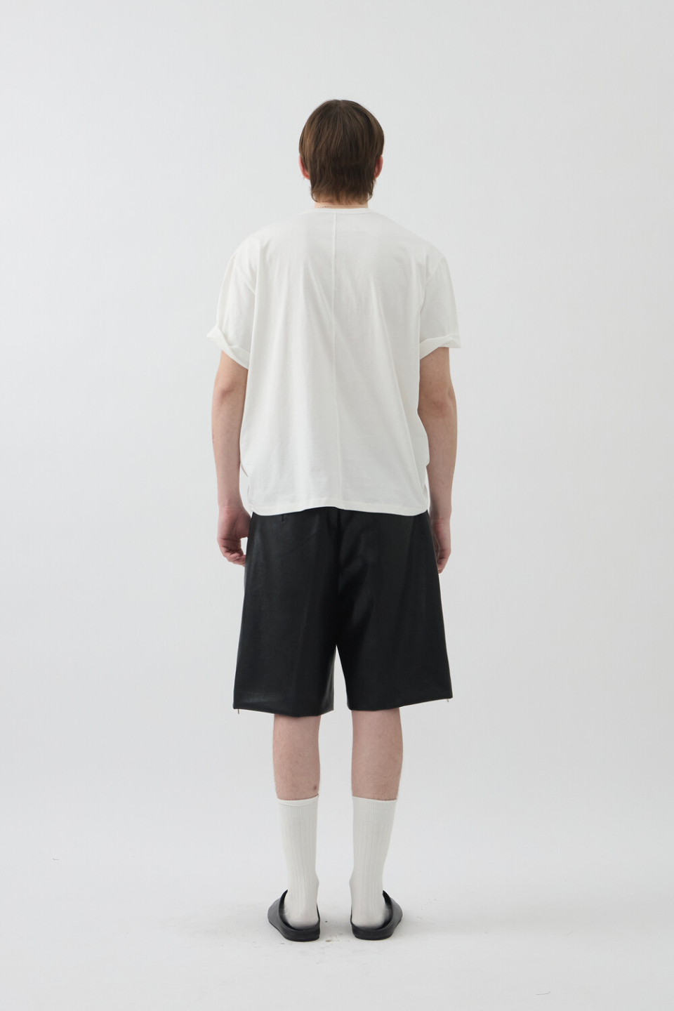 -은은한 언발란스 네크 디자인의 숏슬리브 티셔츠