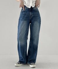 빈티지 페이드 와이드 워싱 데님 팬츠 [DEEP BLUE]