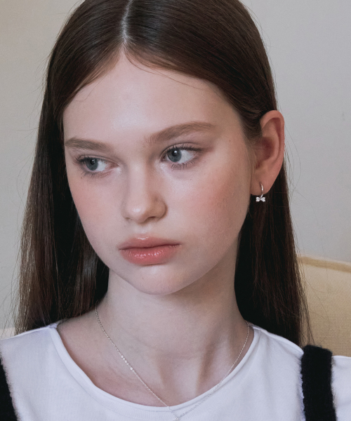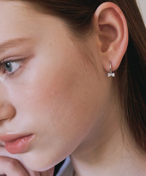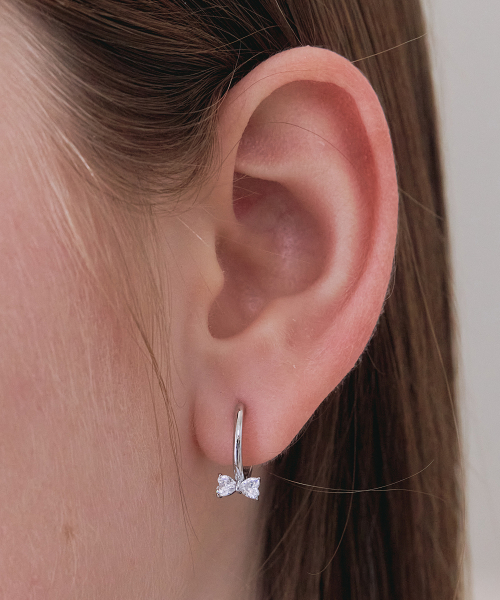 하트 리본 원터치 이어링 STJ-EB1736WG