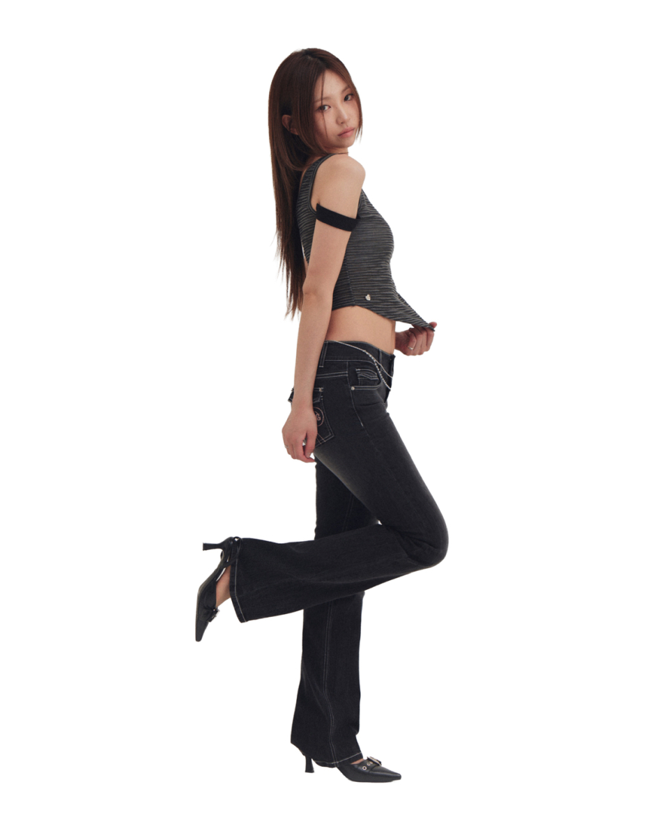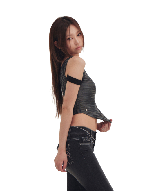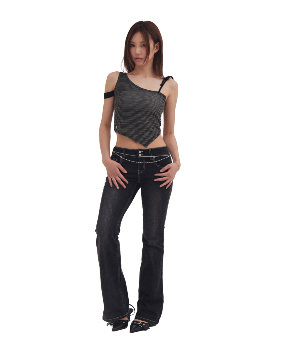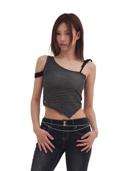 사선으로 떨어지는 밑단은 모든 하의와 잘 어울리며 허리를 더욱 얇게 보이게합니다.