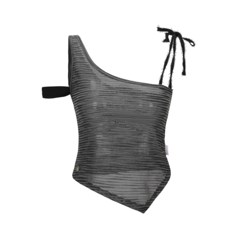 한쪽 팔로 떨어지는 실루엣 다른쪽 어께에 매듭을 묶는 포인트는