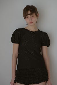 FLOWER RIBBON PUFF T-SHIRT_BLACK