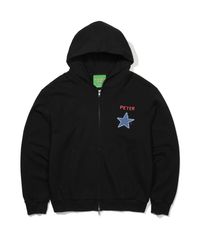 PETER STAR APPLIQUE ZIP HOODIE - BLACK