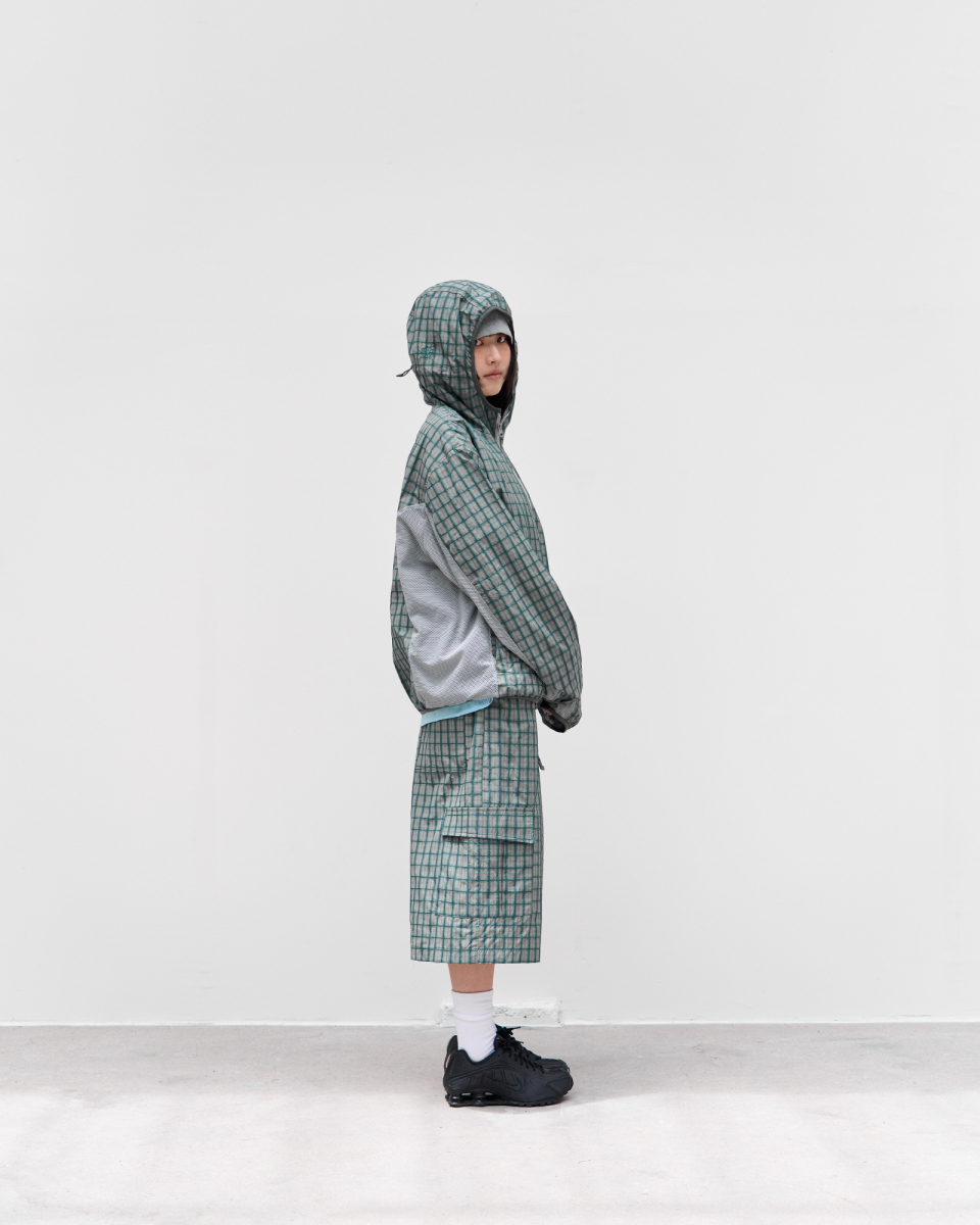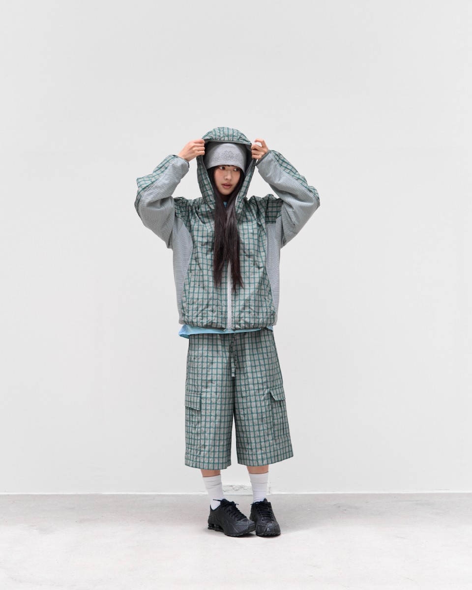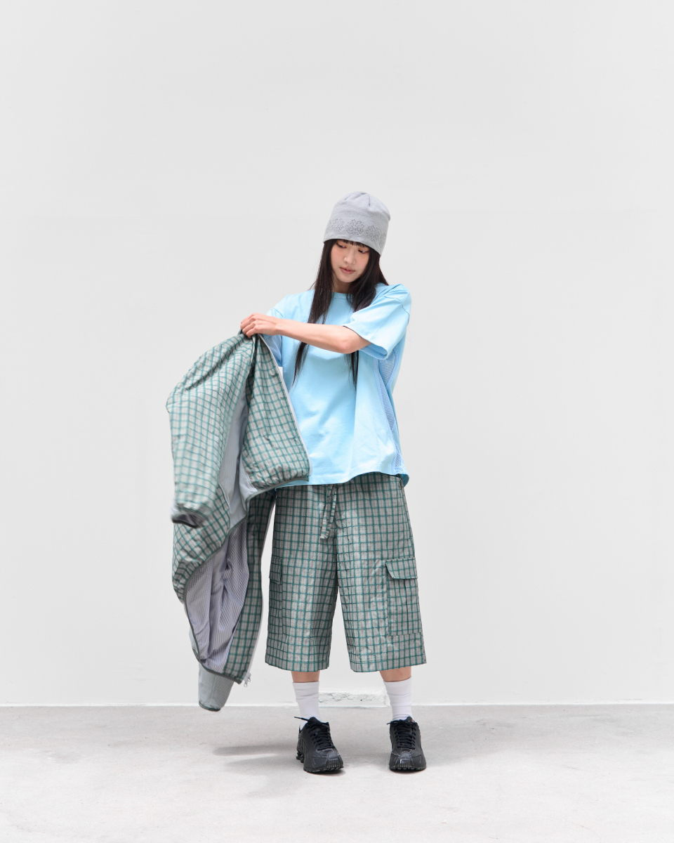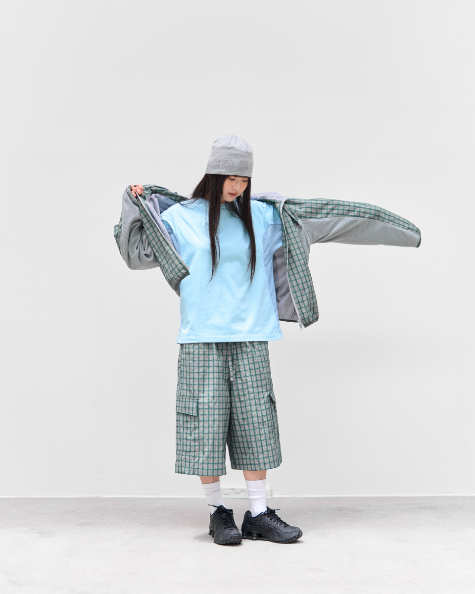 사이드 테크니컬 봉제 및 메쉬 원단 디테일