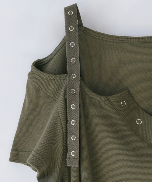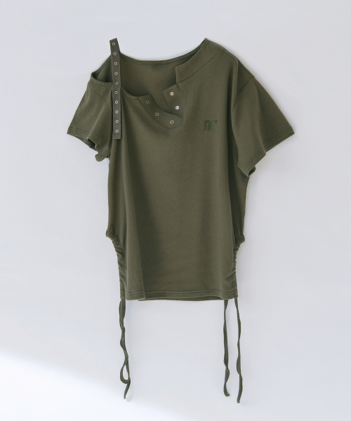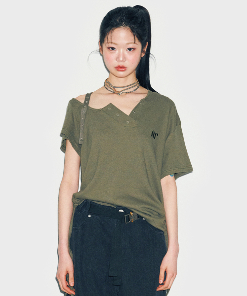 T18.00 Haff-off-shoulder Short-sleeved T-shirt _ Khaki