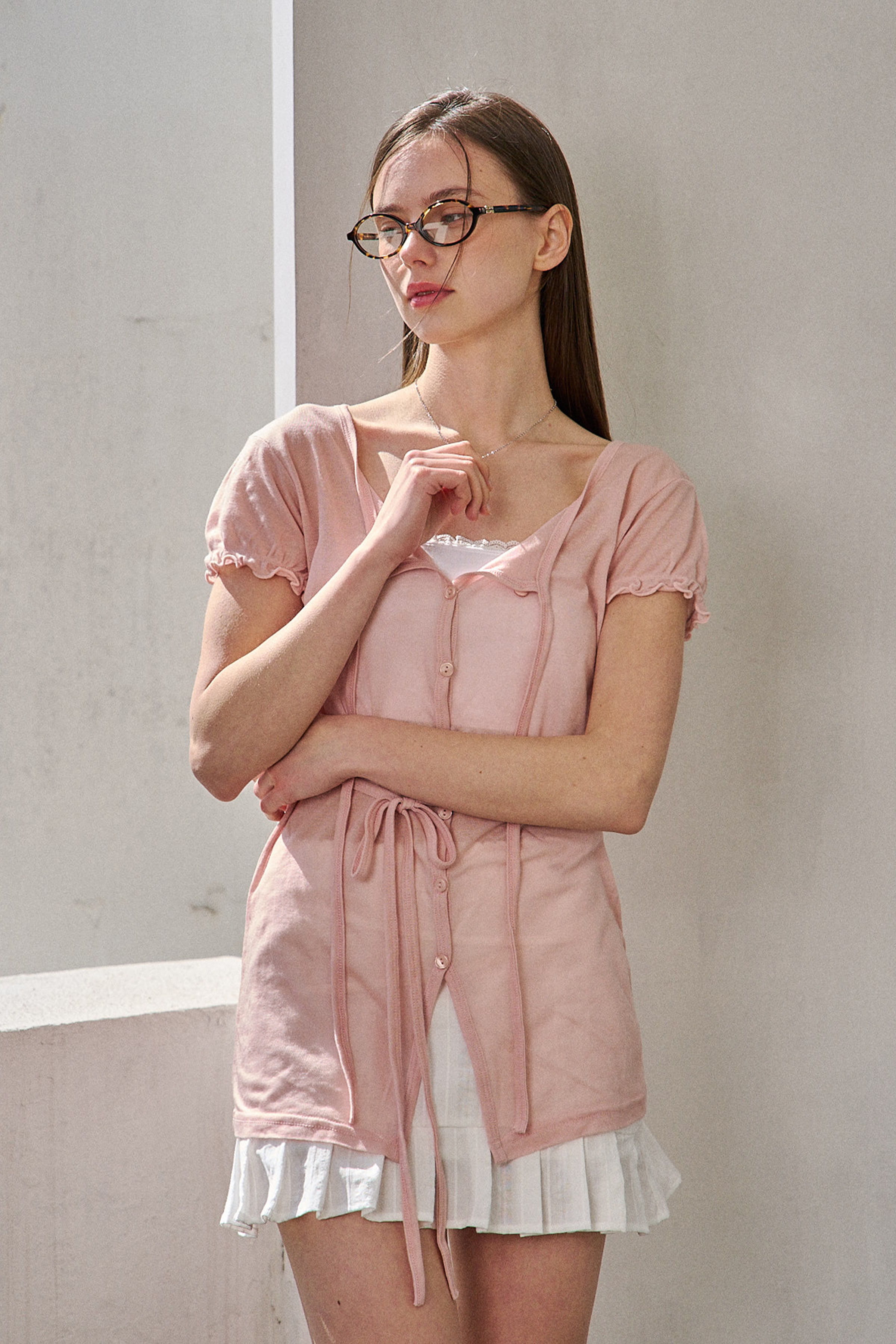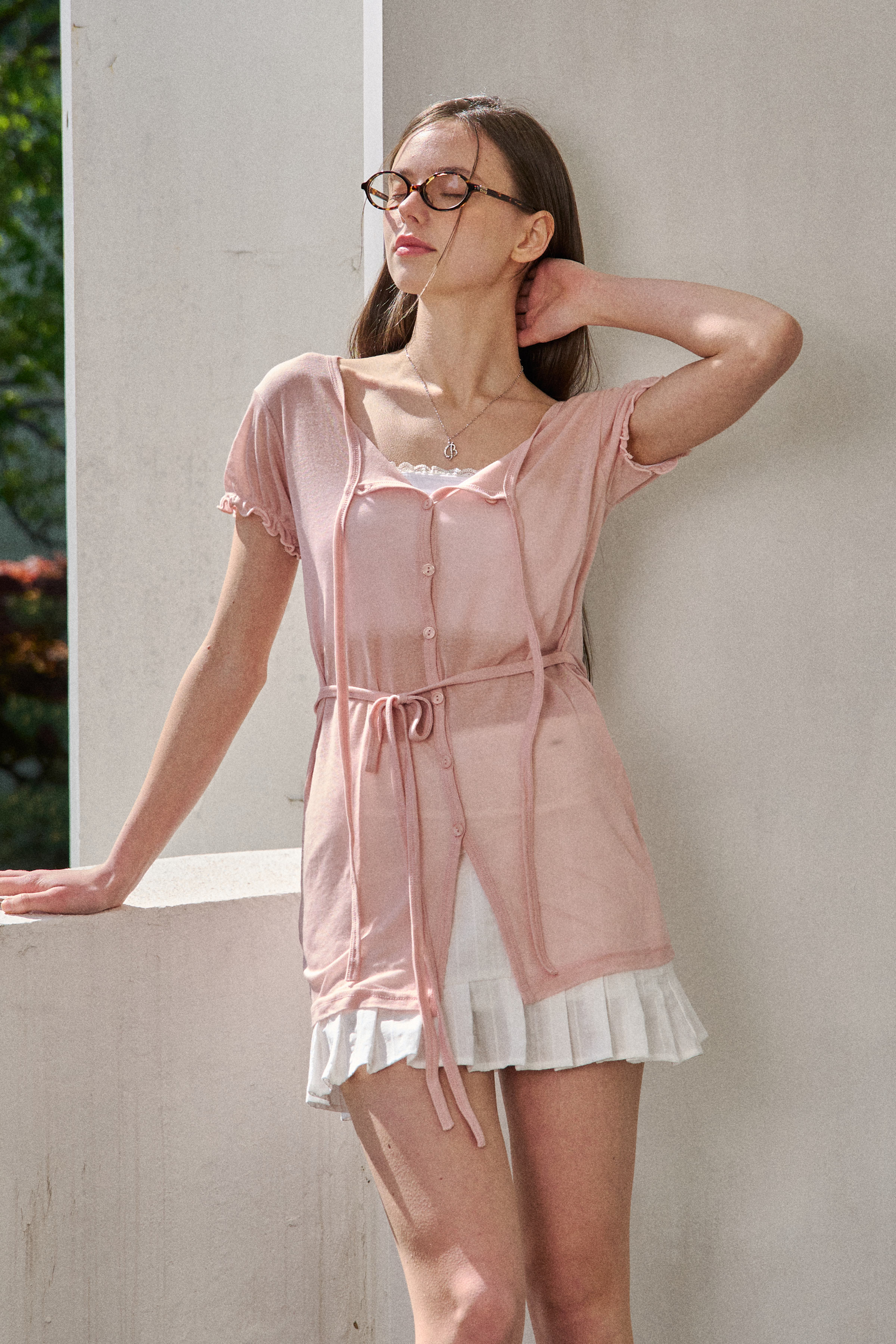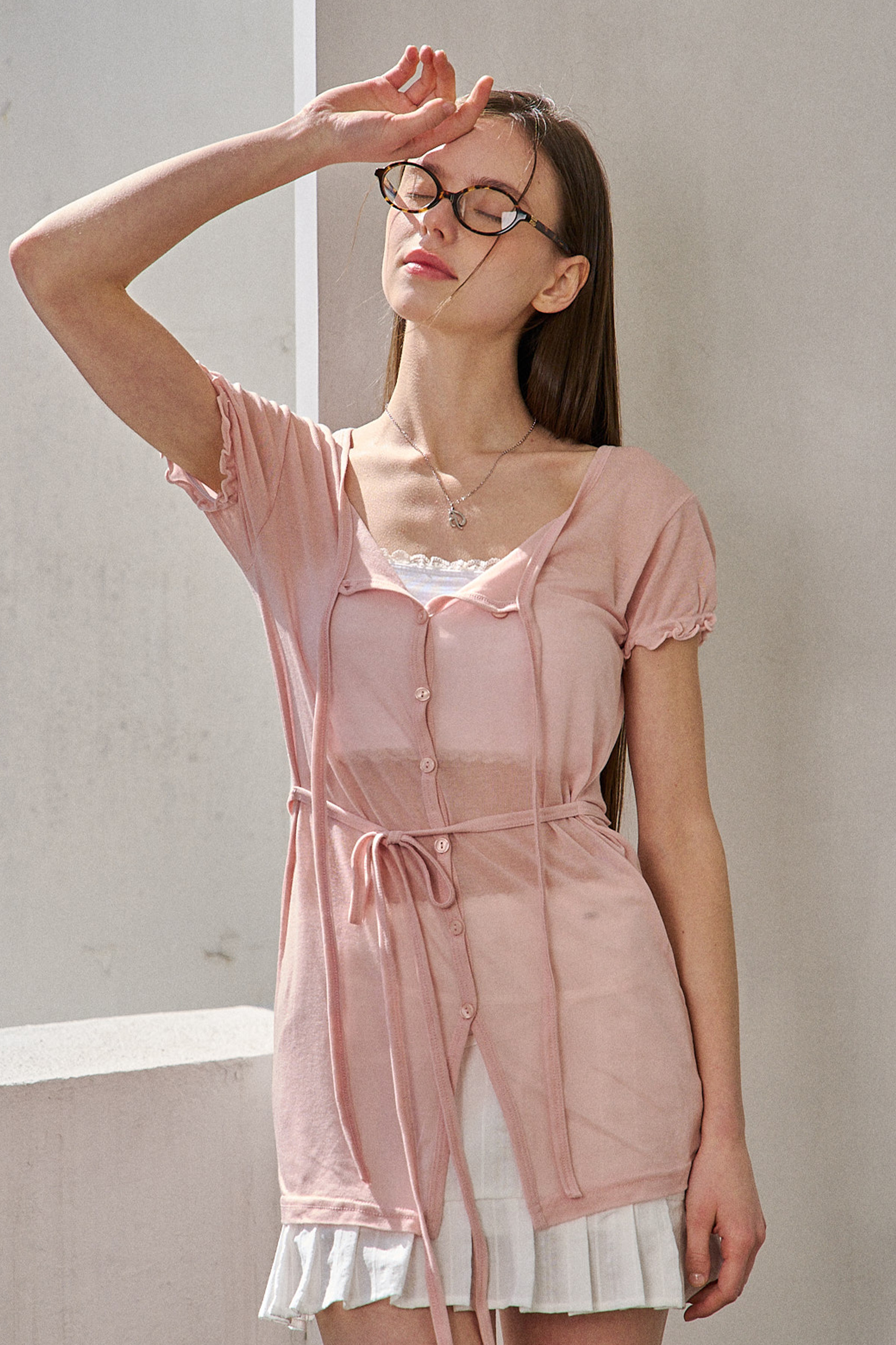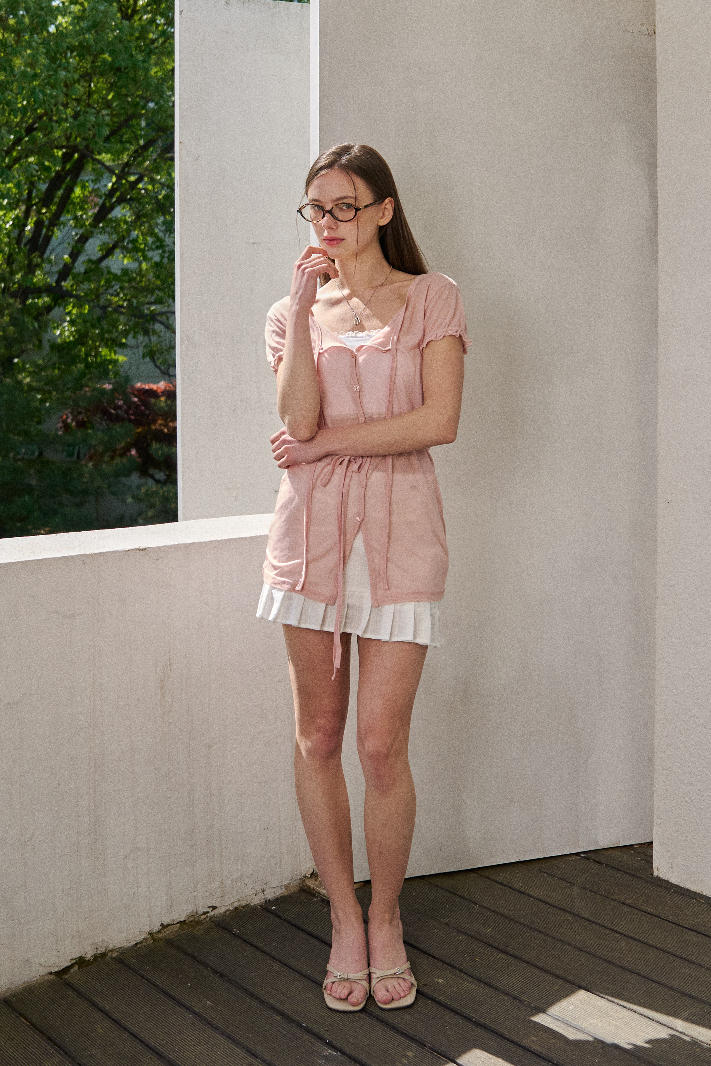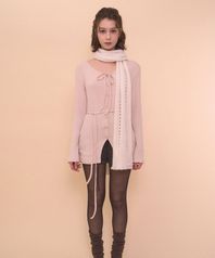 STRAP LONG SLEEVE CARDIGAN-CREAM PINK
