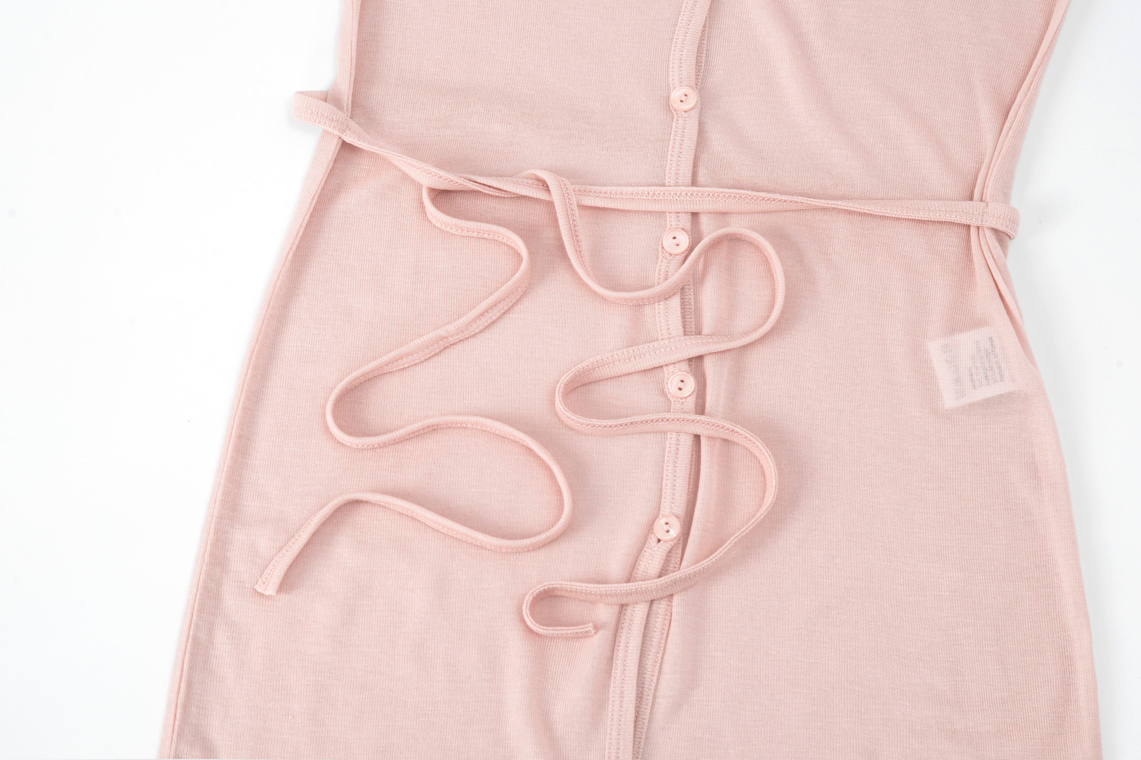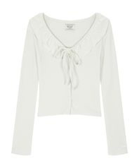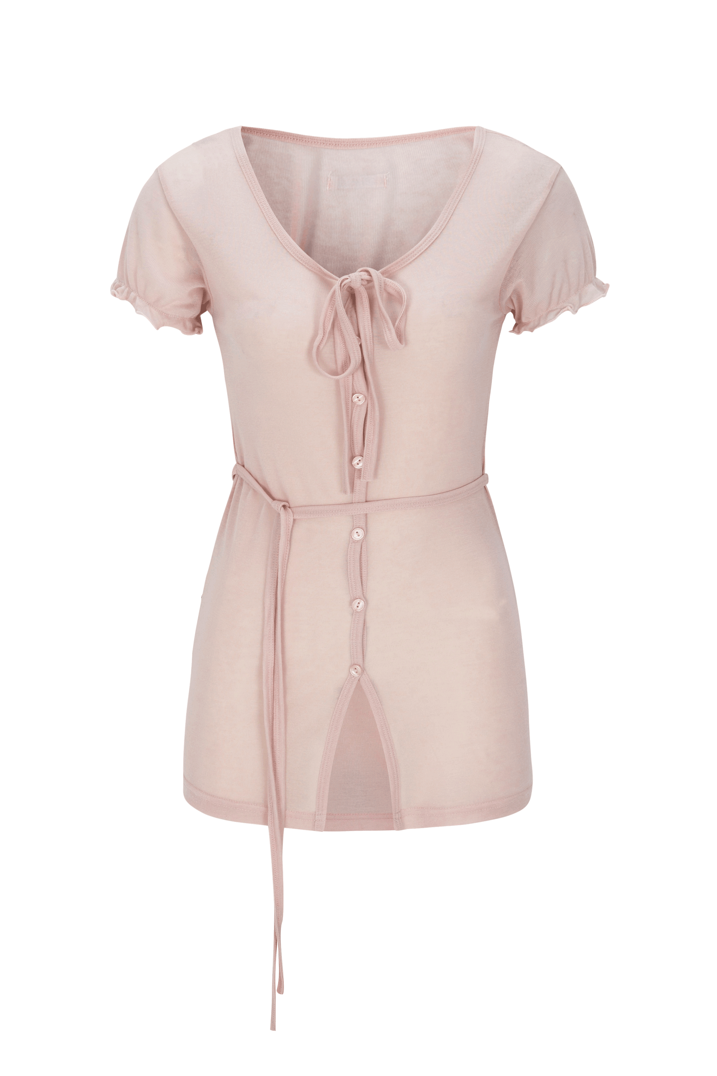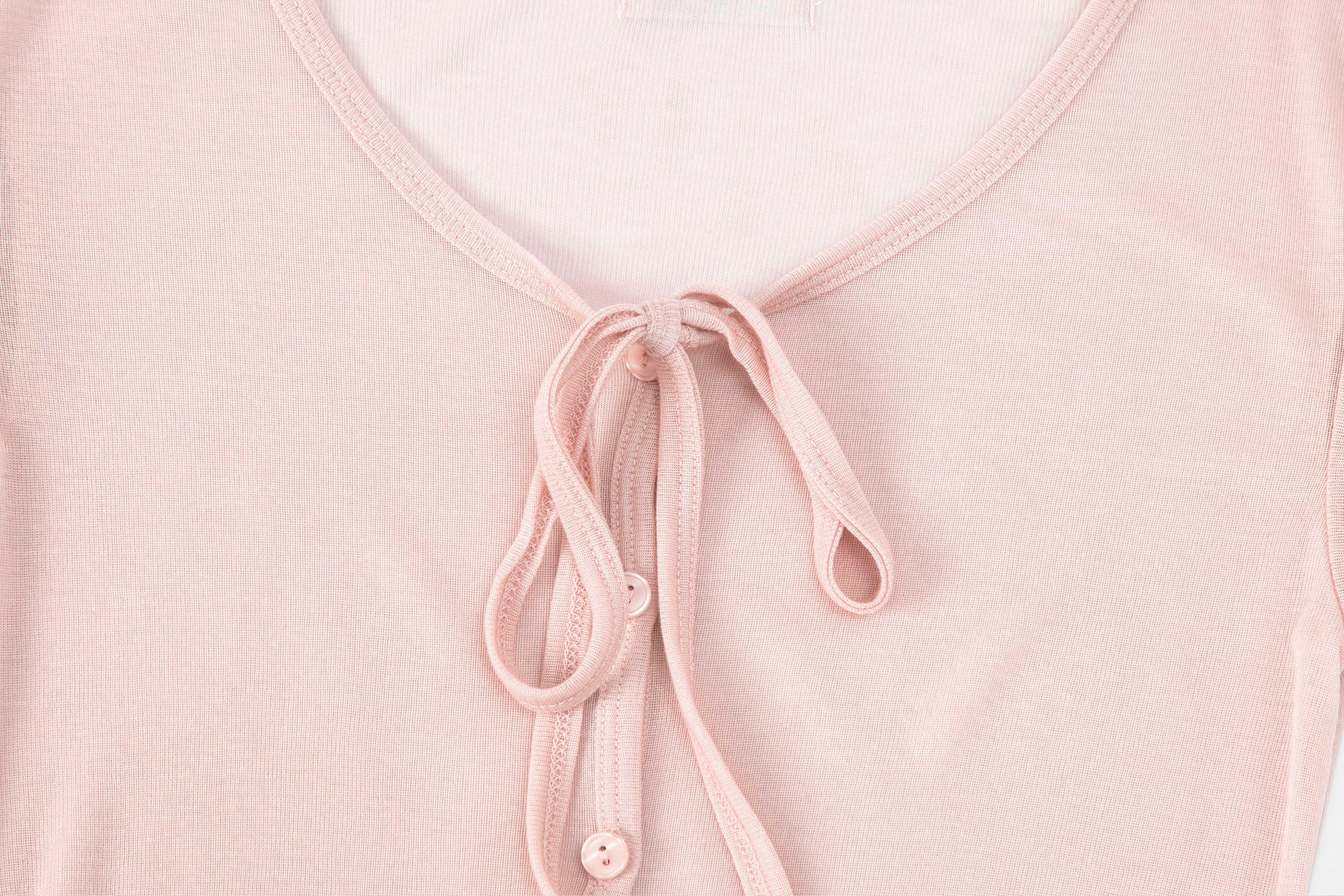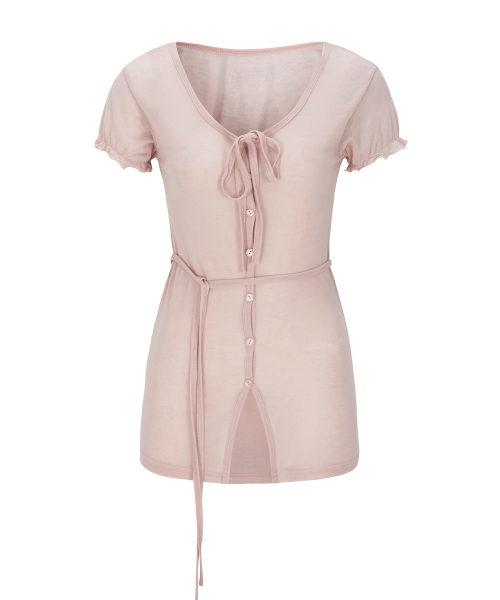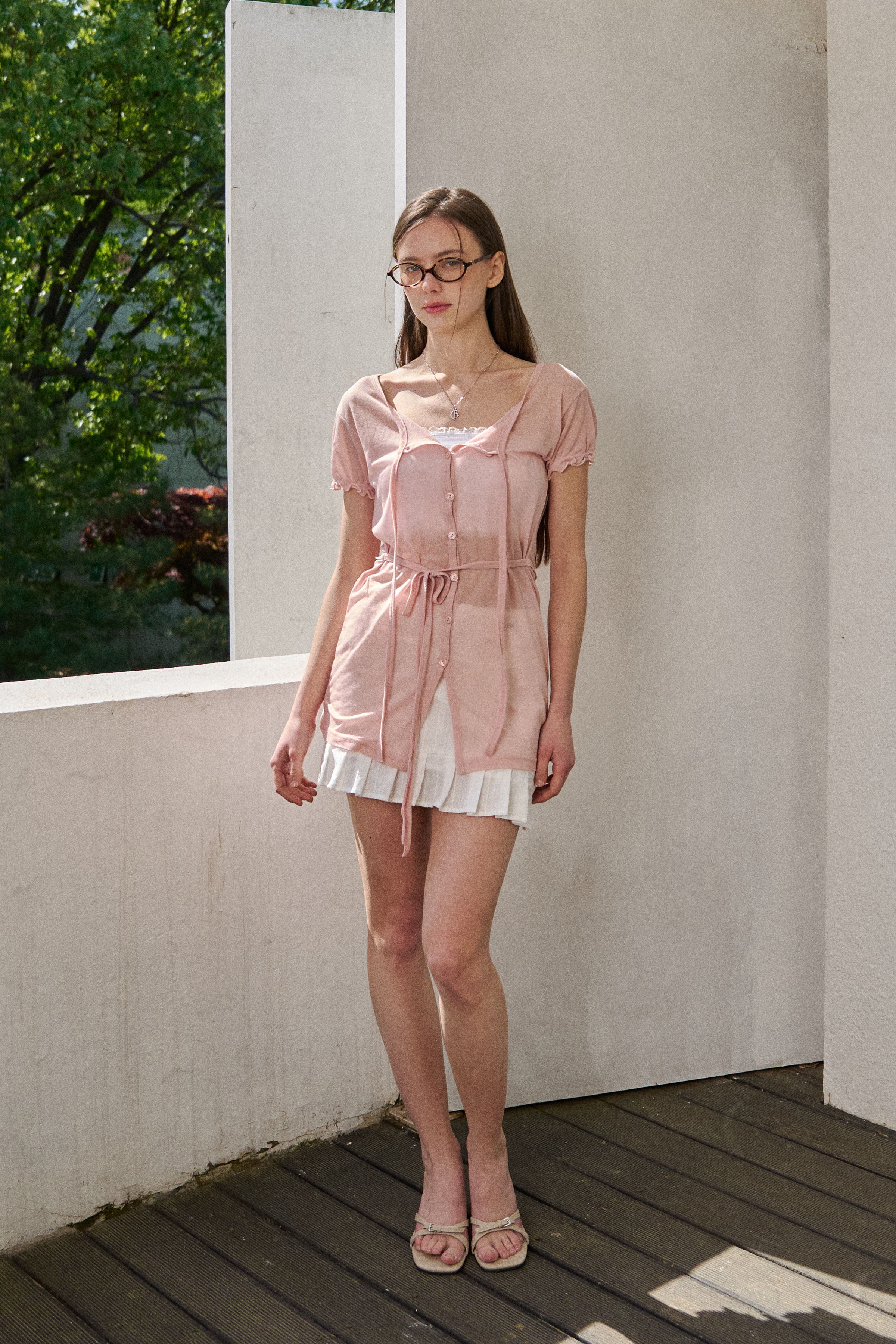 STRAP LONG SLEEVE CARDIGAN-CREAM PINK
