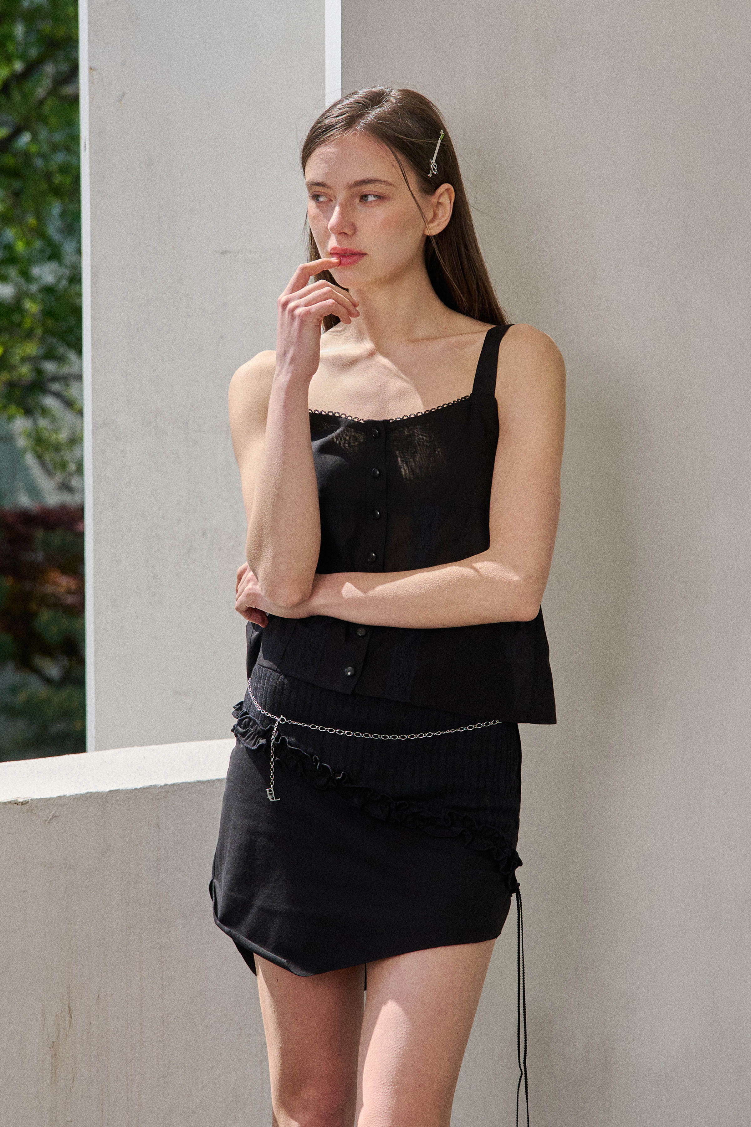 SELLY CUTTING SKIRT-BLACK