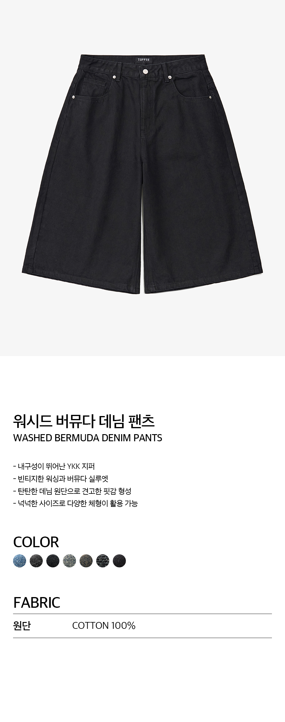 워시드 버뮤다 데님 팬츠 (WASHED BLACK)