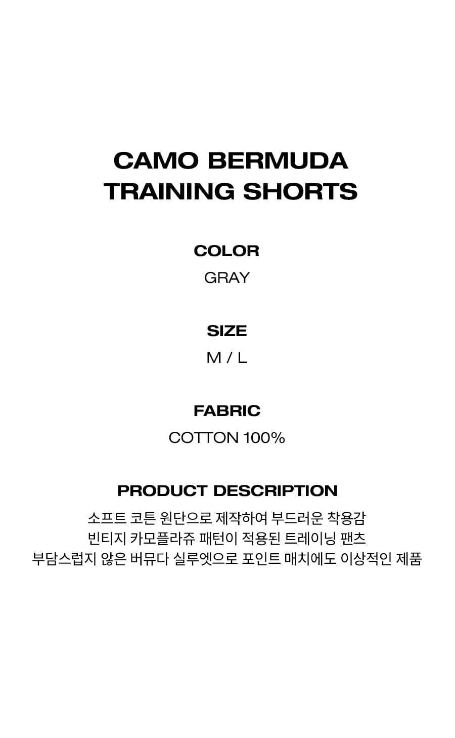 카모 버뮤다 트레이닝 쇼츠[그레이]