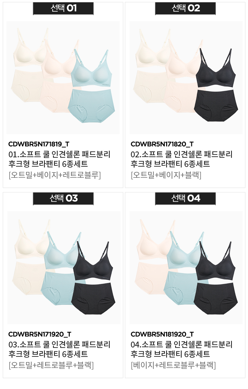 리얼스킨 인견 심리스 브라팬티 세트(4colors)