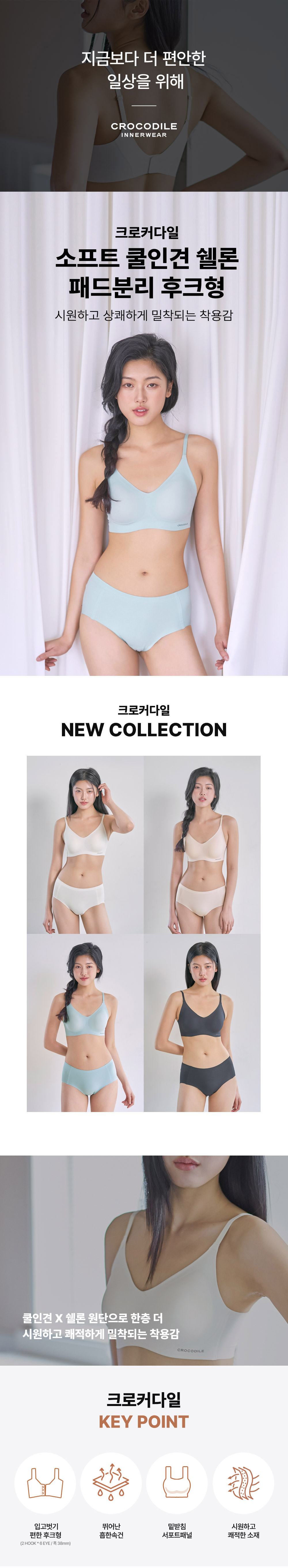 크로커다일 이너웨어(CROCODILE INNERWEAR)의 시그니처 심리스 라인은 날아갈 듯 가볍게, 안 입은 듯 편안하게 그리고 매일 아침의 상쾌함을 선사하는 데일리 언더웨어 브랜드입니다.