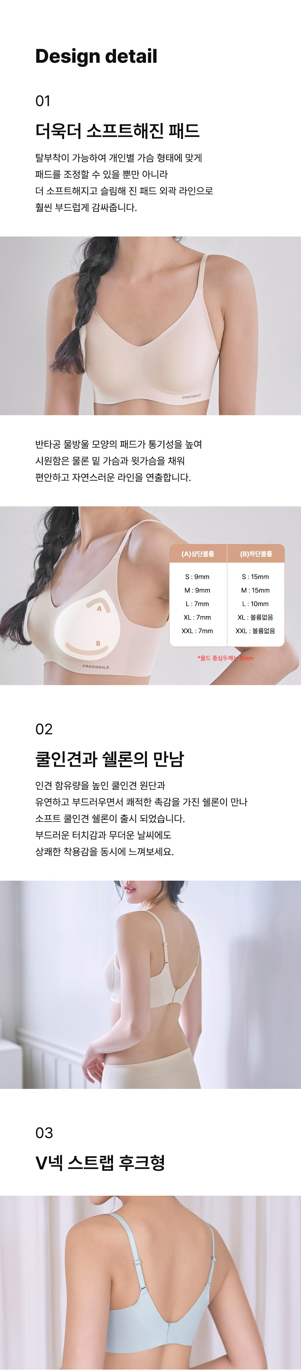 [3PACK] 소프트 쿨 인견쉘론 패드분리 후크형 브라팬티
