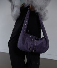 SUEDE STUDDED SHOULDER BAG / PURPLE