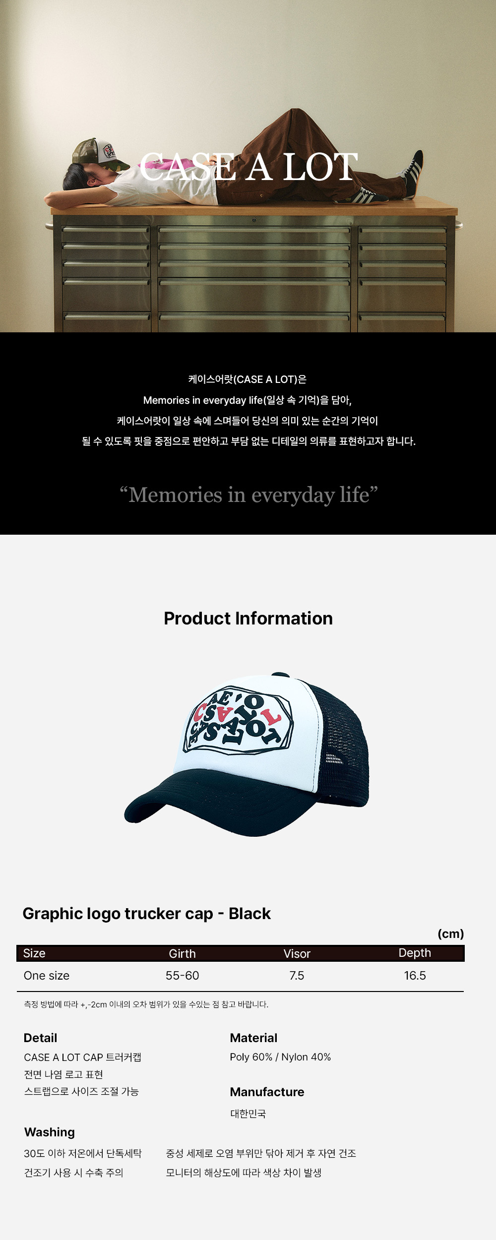 케이스어랏(CASE A LOT)은 일상 속 기억(memories in everyday life)'를 담아 당신의 의미 있는 순간의 기억이 될 수 있도록 편안하고 부담 없는 디테일의 의류를 표현하고자 합니다.