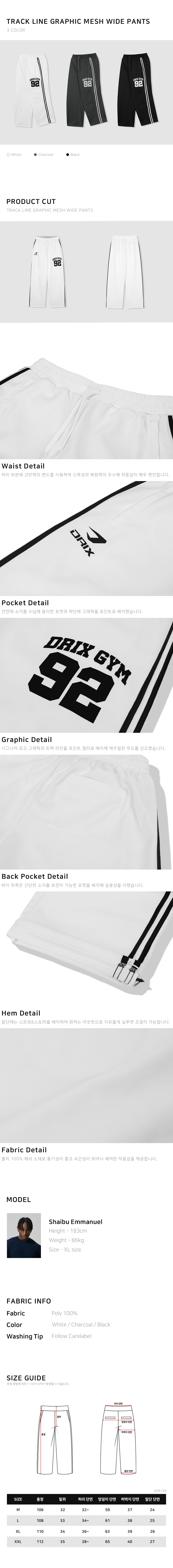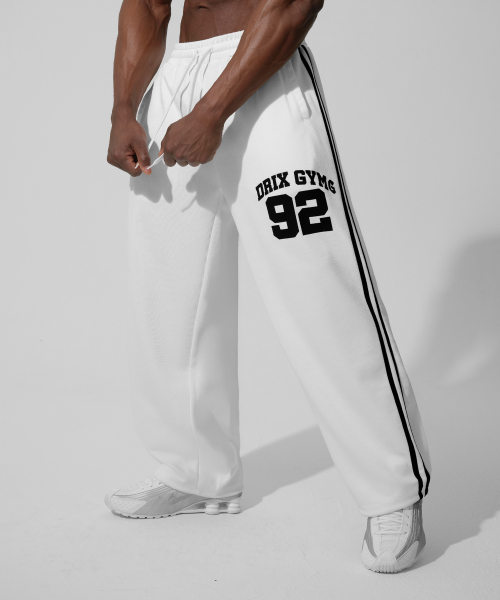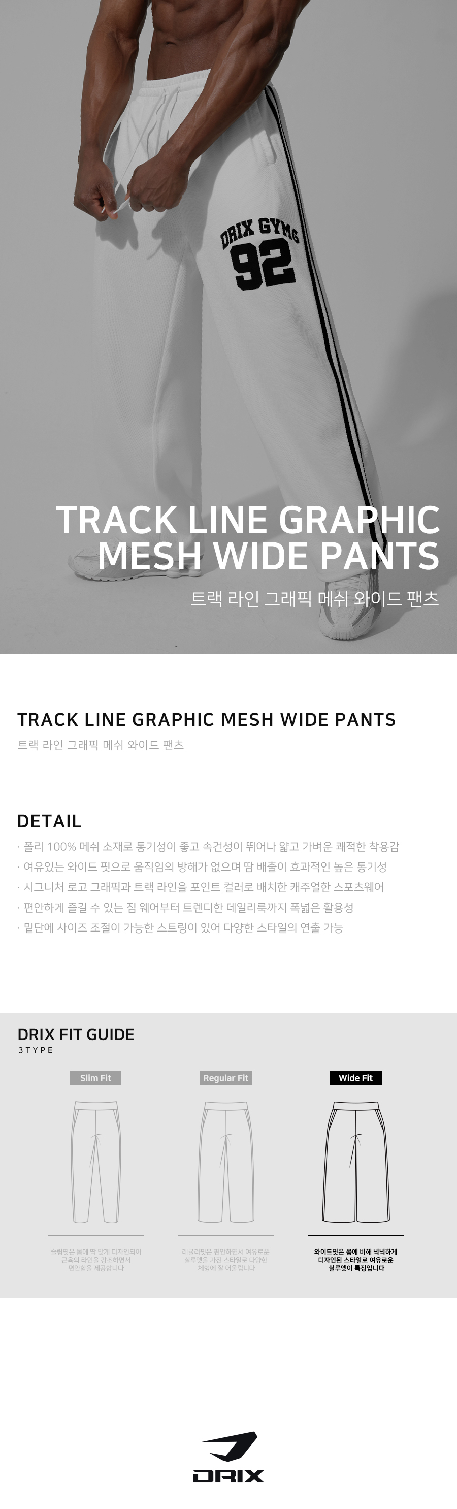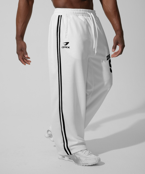 (여름용) 트랙 라인 그래픽 메쉬 와이드 팬츠_화이트