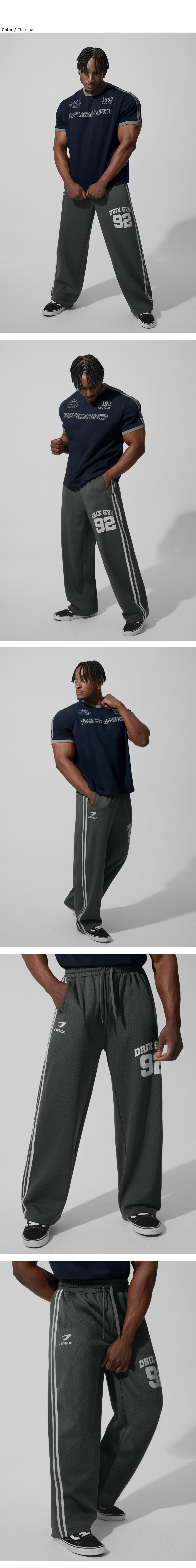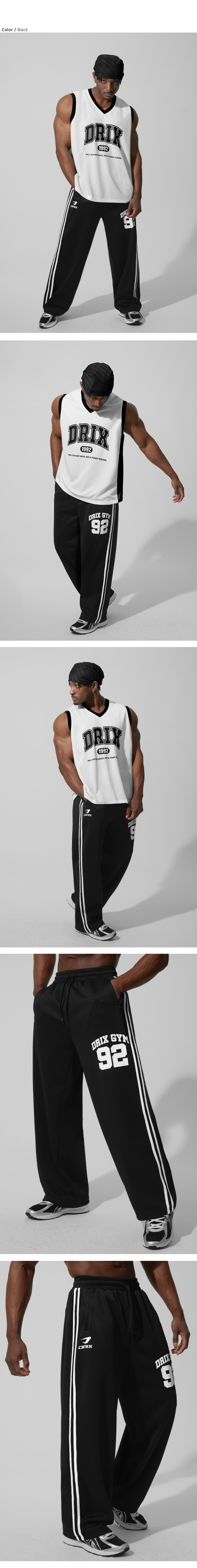 (여름용) 트랙 라인 그래픽 메쉬 와이드 팬츠_블랙