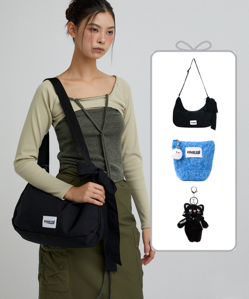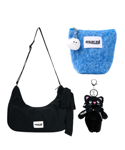 [SET] RIBBON CRESCENT BAG & POODLE POUCH & KEYRING SET