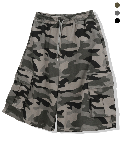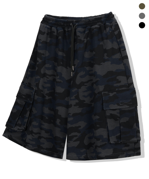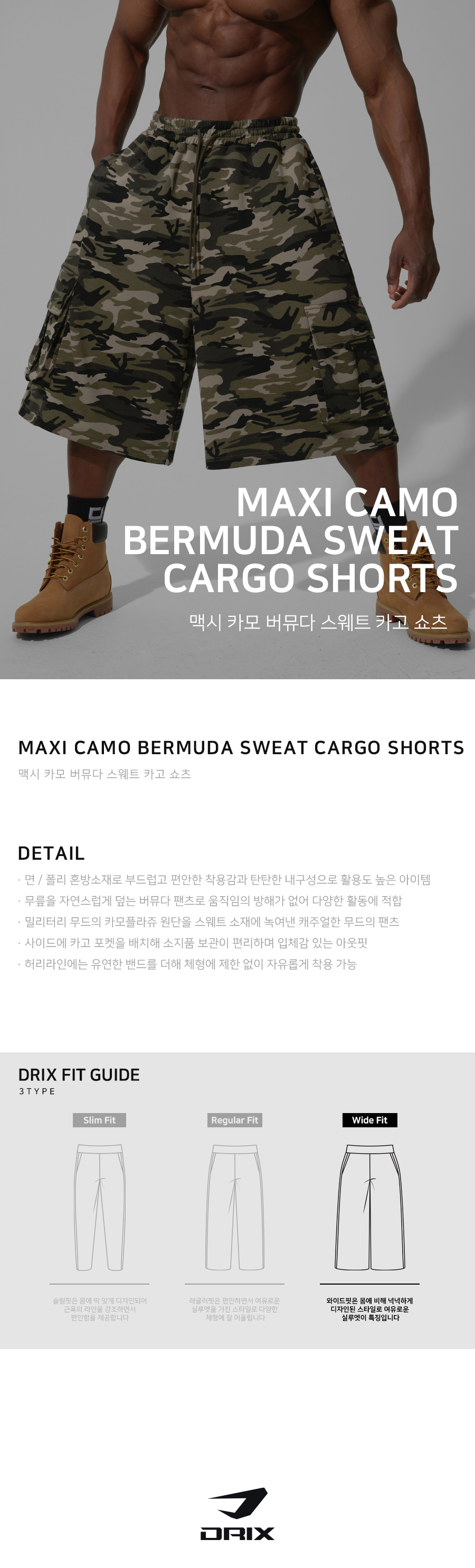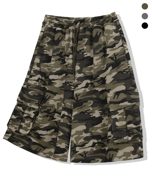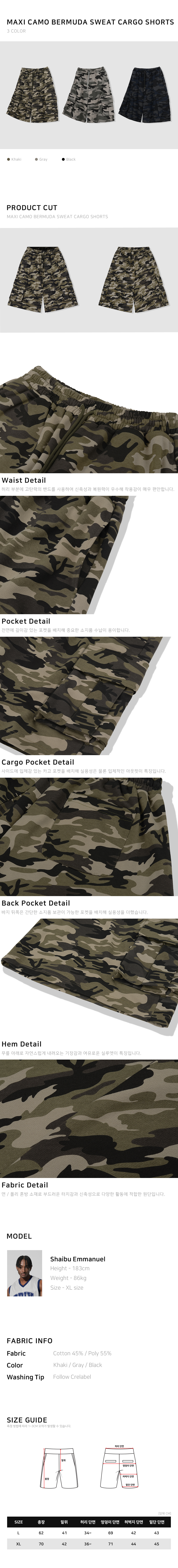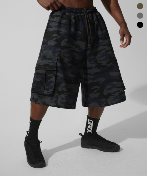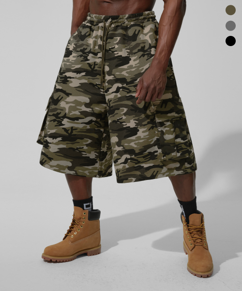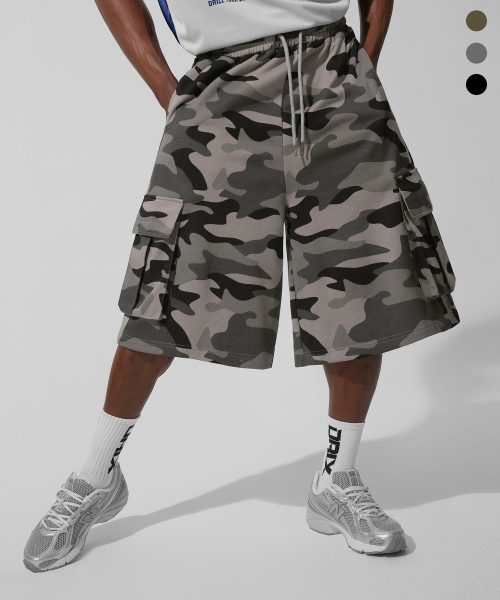 맥시 카모 버뮤다 스웨트 카고 쇼츠_3color