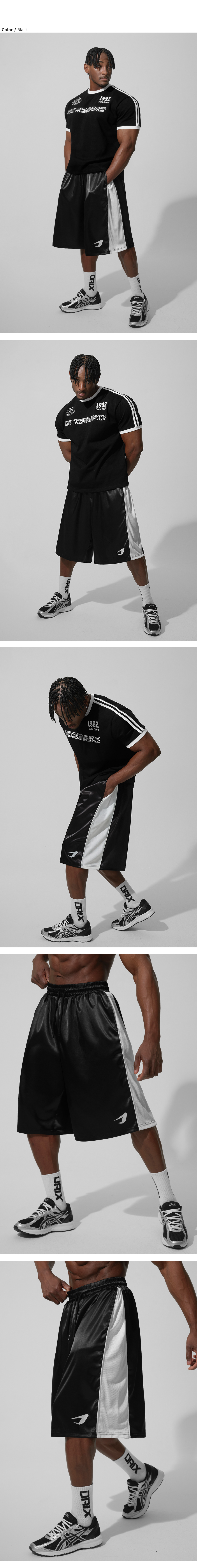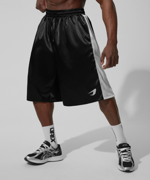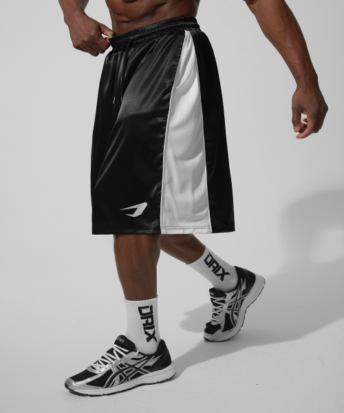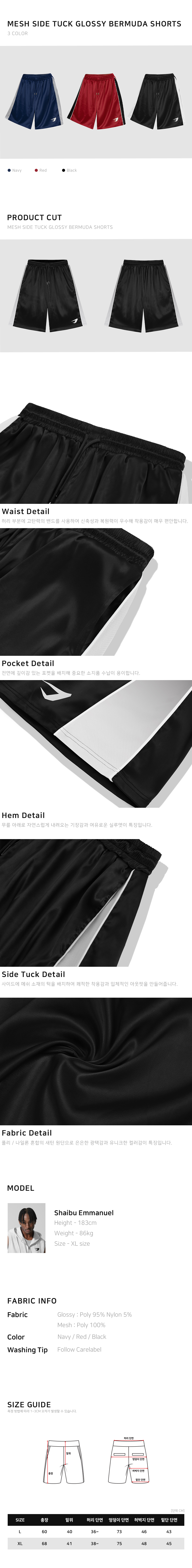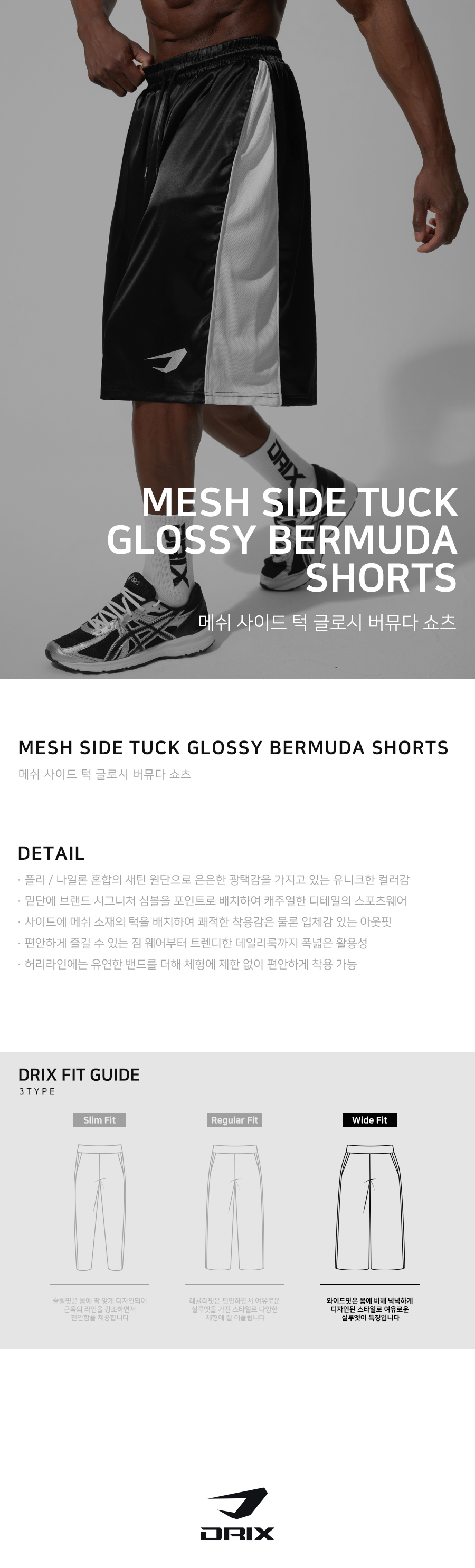 메시 사이드 턱 글로시 버뮤다 쇼츠_블랙