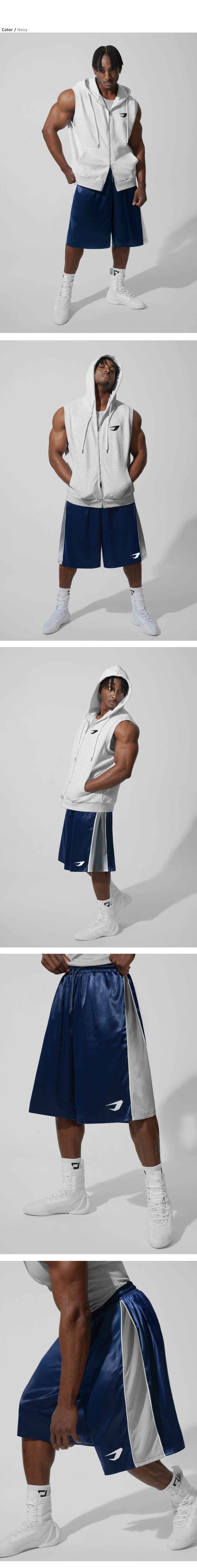 메시 사이드 턱 글로시 버뮤다 쇼츠_네이비