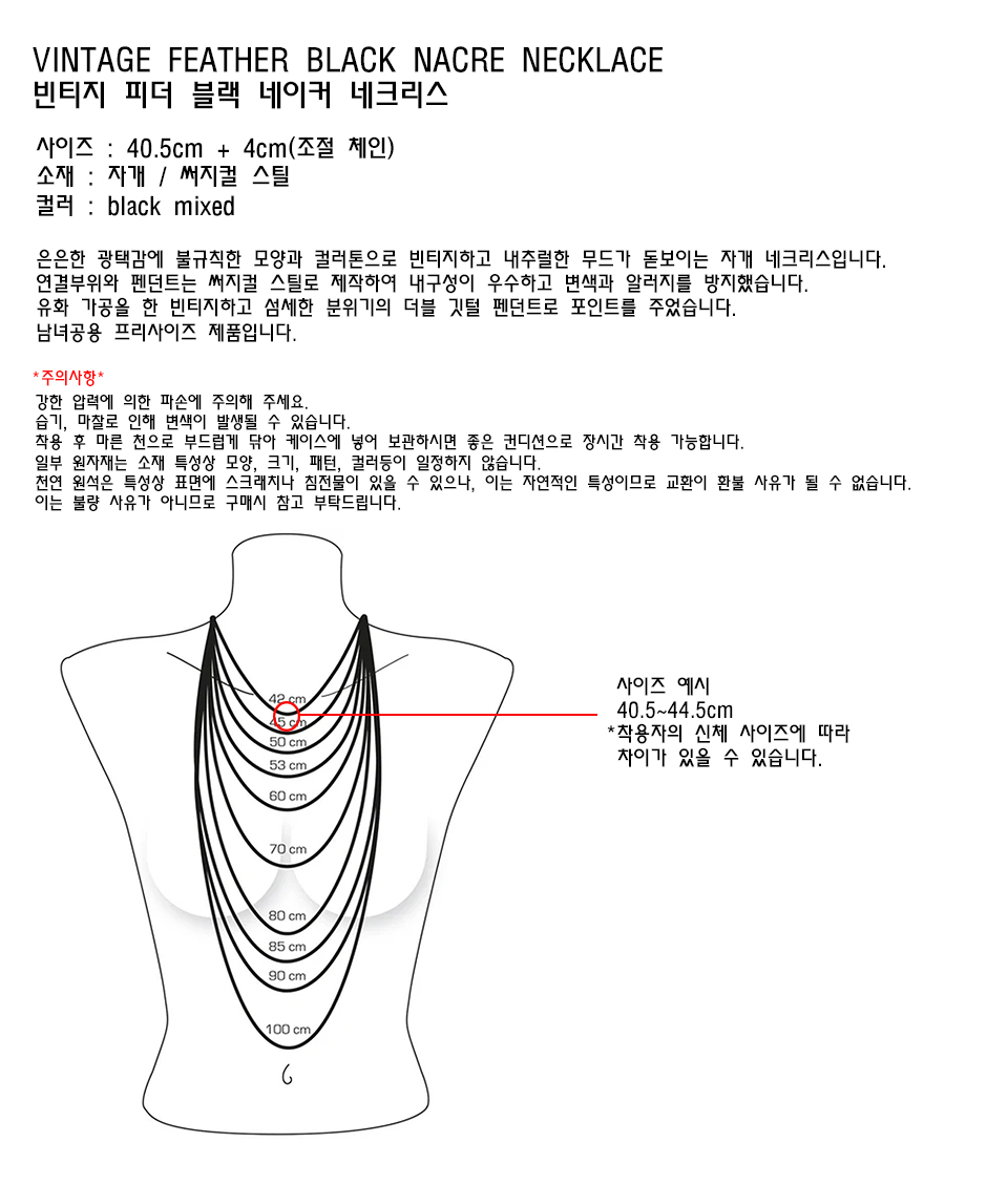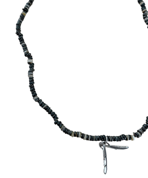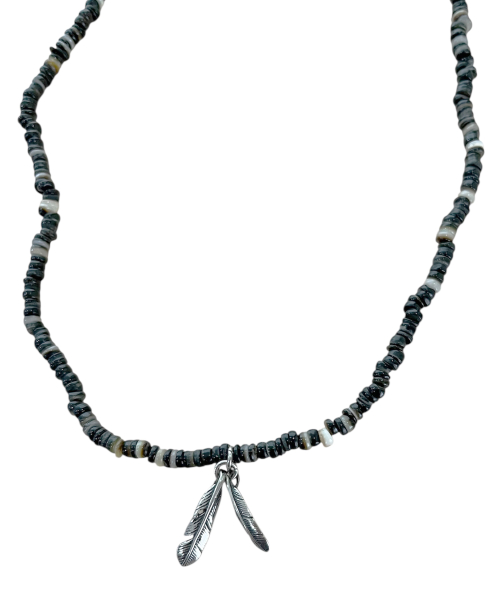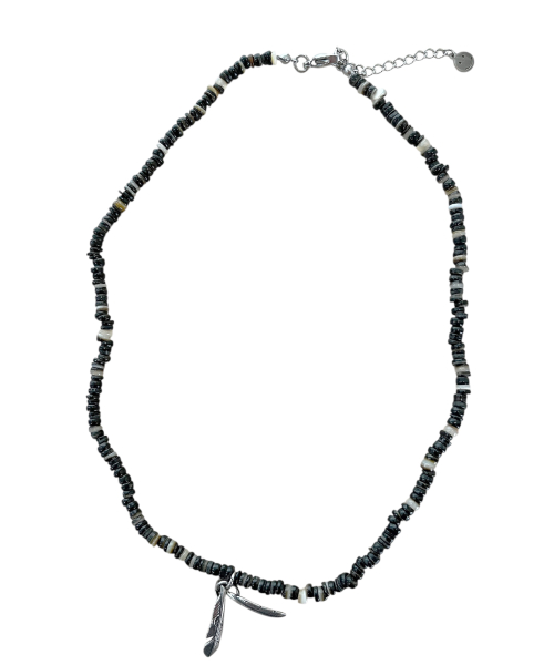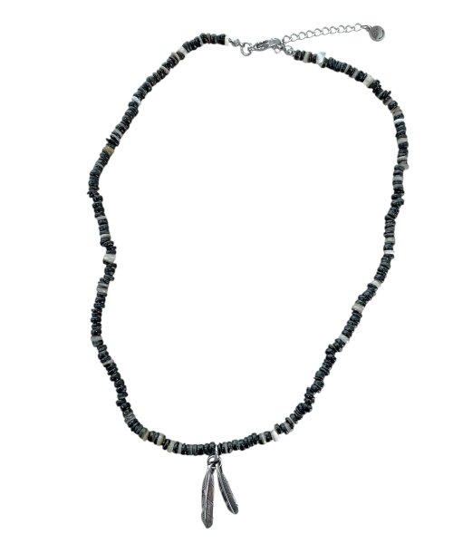 Vintage Feather Black Nacre Necklace ((black mixed))