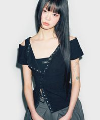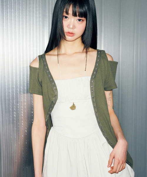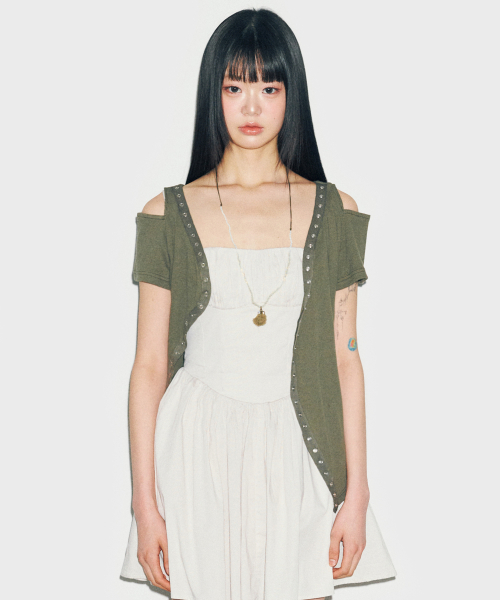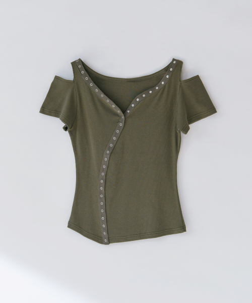T19.00 Snep point Short-sleeved cardigan _Khaki