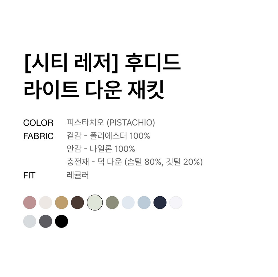 [시티 레저] 후디드 라이트 다운 재킷 [피스타치오]