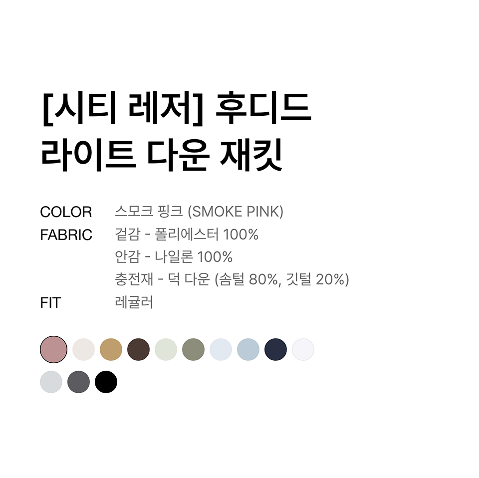 [시티 레저] 후디드 라이트 다운 재킷 [스모크 핑크]